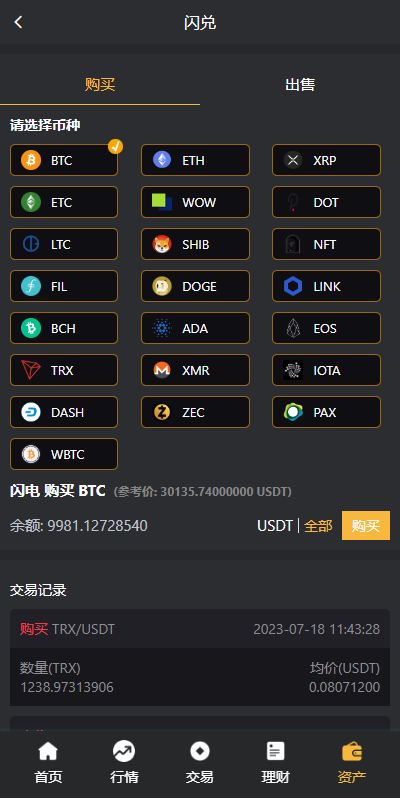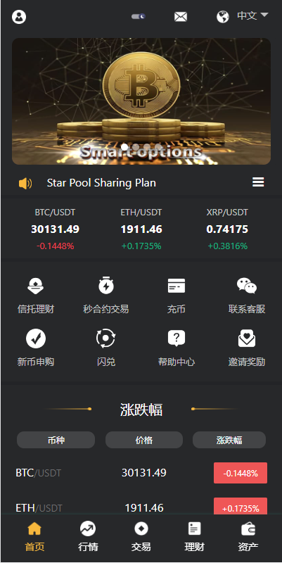 功能支持:币币交易、合约交易、秒合约交易、闪兑、借贷、理财、认购等