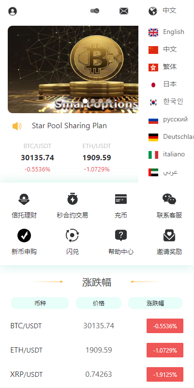 多语言交易所系统/秒合约交易/理财认购矿机闪兑贷款