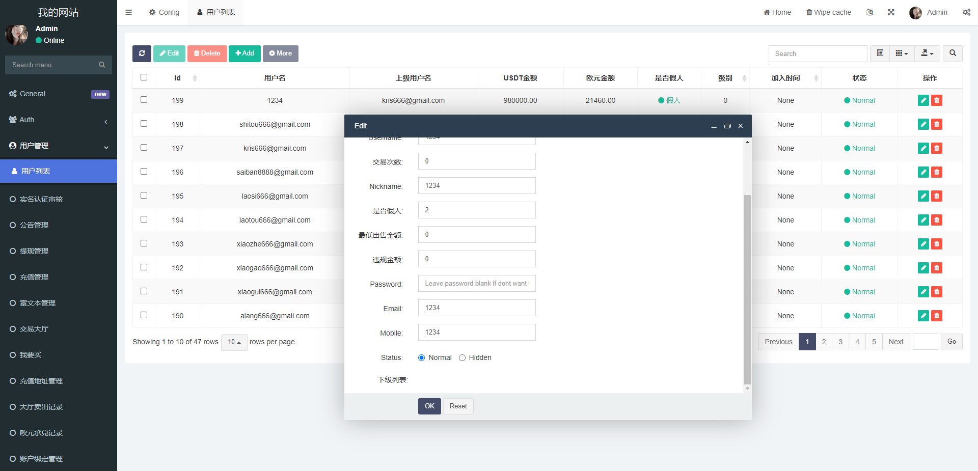 首页的虚拟币数据是对接一个私人的bbank交易所的,需要自行更改
