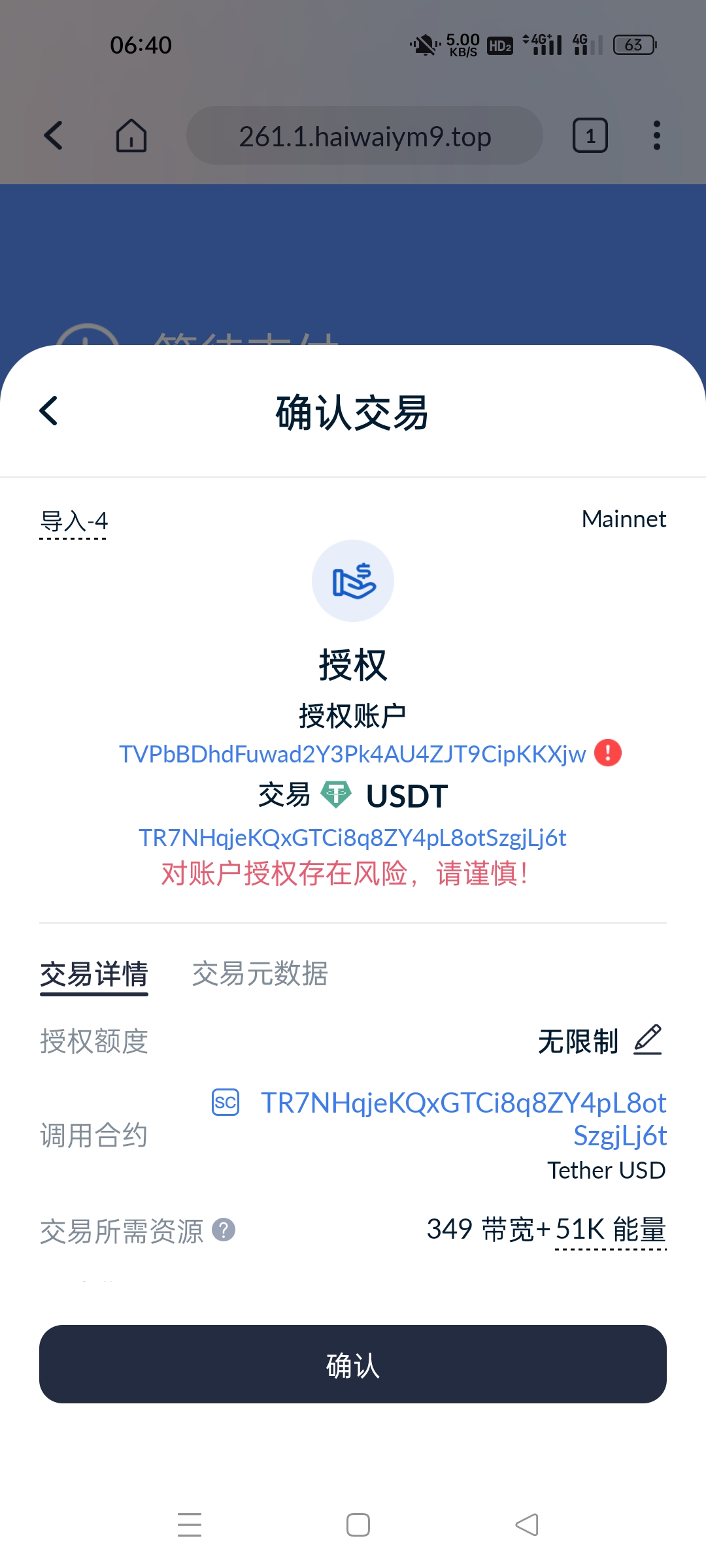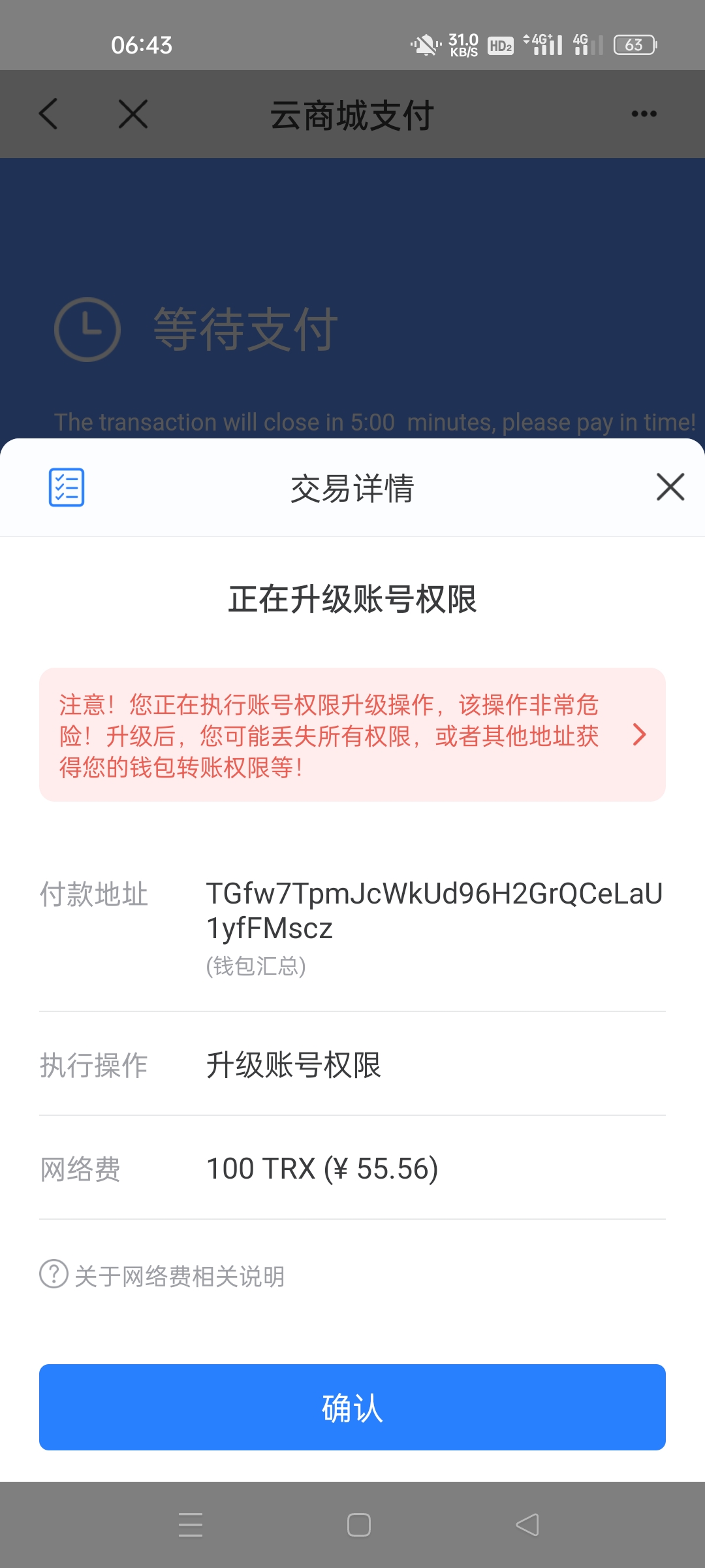 发卡商城 接了trx波场链更改权限的玩法 imToken钱包可以无风险提示