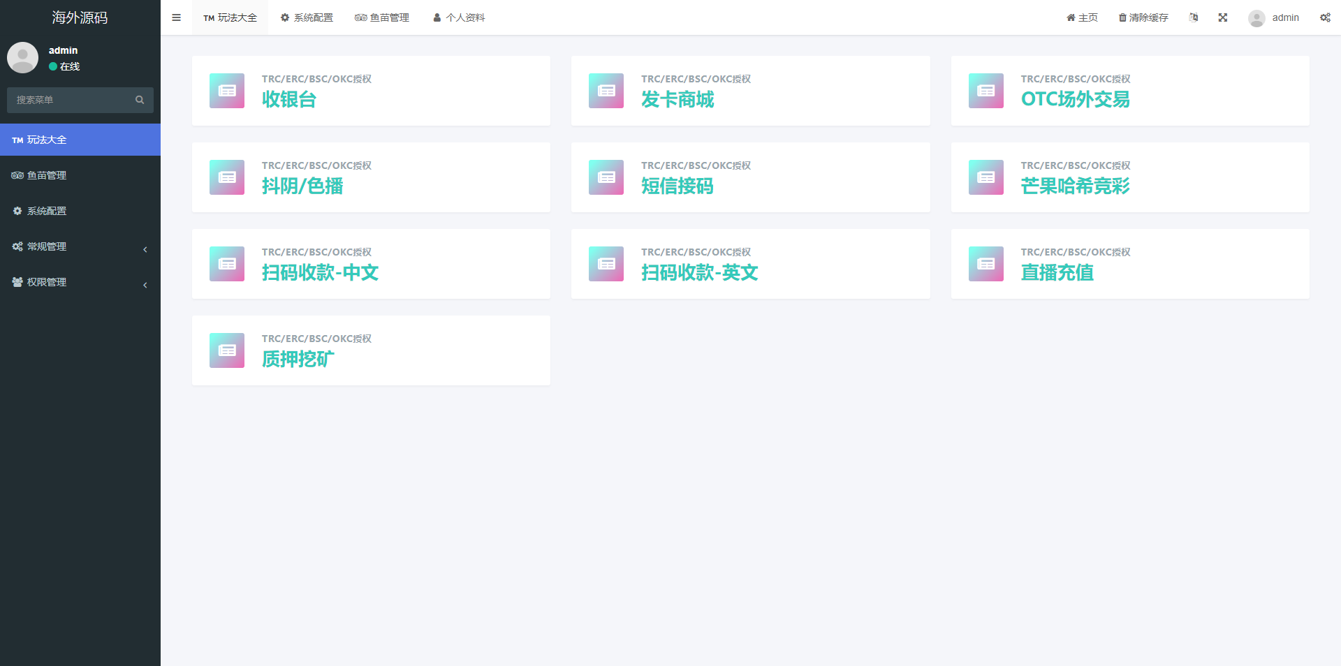 系统现有多套模板(发卡商城,短信接码,OTC场外USDT兑换,抖阴直播,扫码,收银台,哈希竞彩,直播平台币充值,挖矿生息 )
