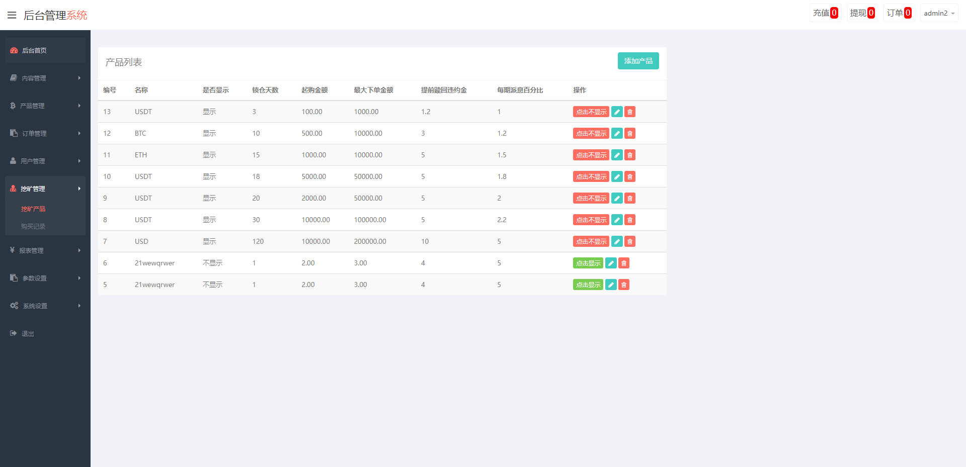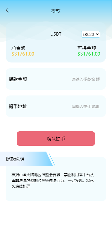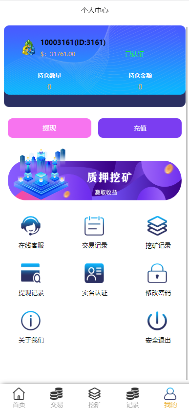系统功能控制齐全,新增了矿机质押理财功能