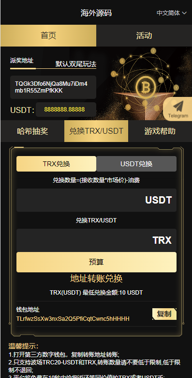 前端附带的trx兑换功能,只有展示效果,目测没有实质功能,点不动