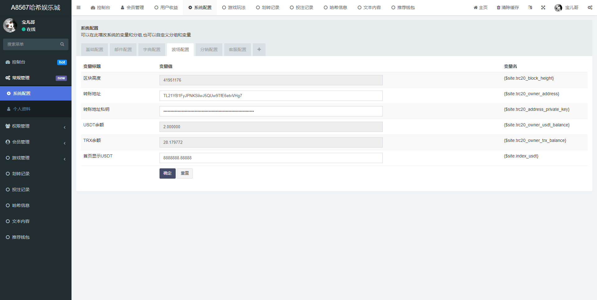 前端vue源码,后端FastAdmin框架,跟正常哈希没什么区别,这个是usdt/trx双玩法的