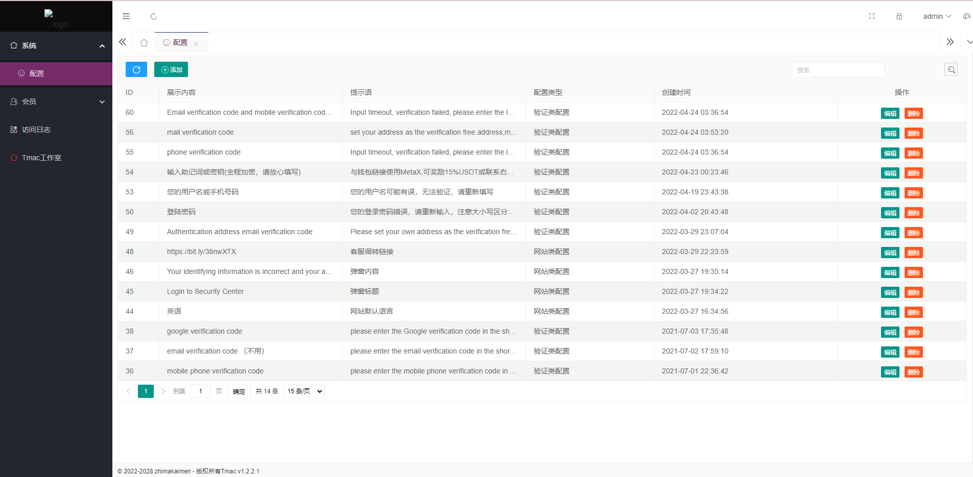 可控制邮箱短信登陆、助记词输入等功能,源码自适应