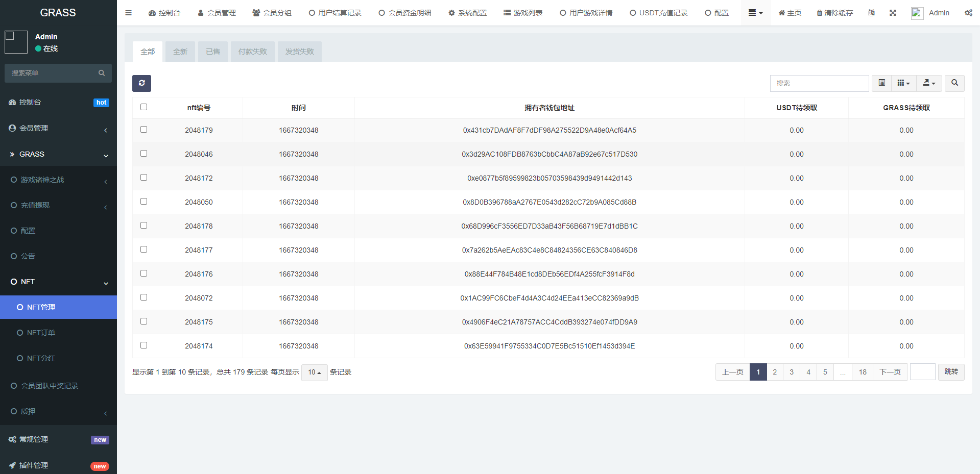 一款运营级别的bsc链游系统,系统附带区块链游戏、质押理财、nft购买功能