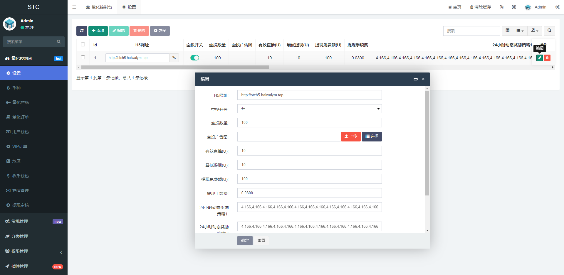 一套全新开发的区块链量化机器人系统,前端uinapp可生成原生app,后端fastadmin框架,接口端是nodejs