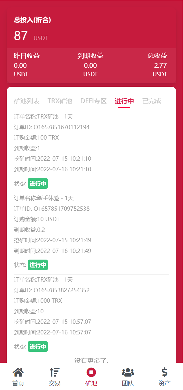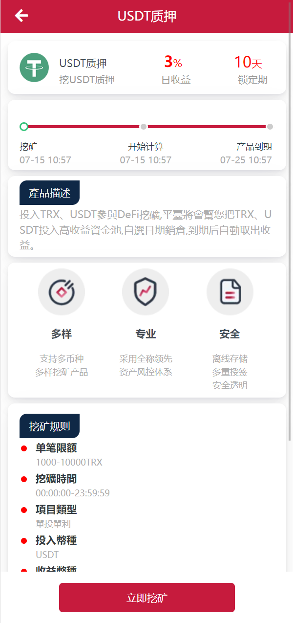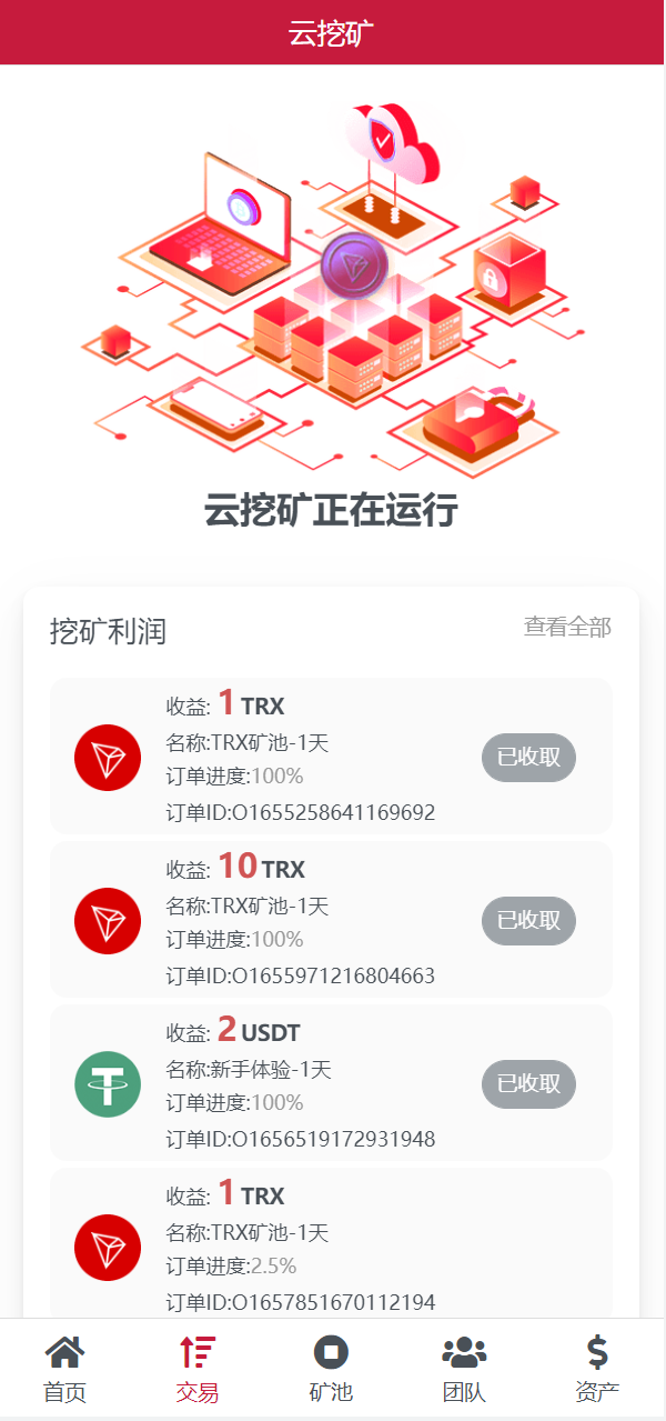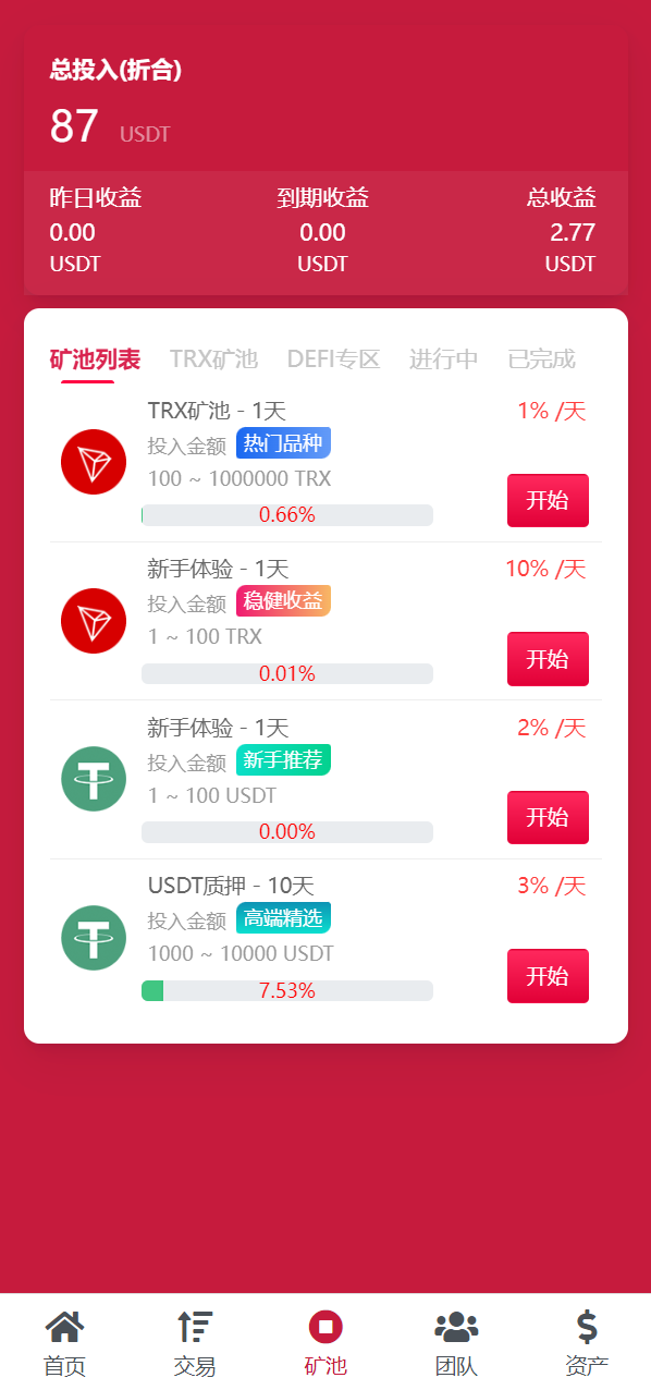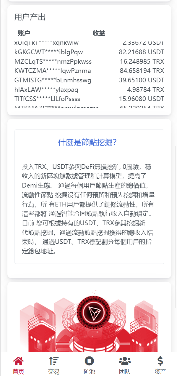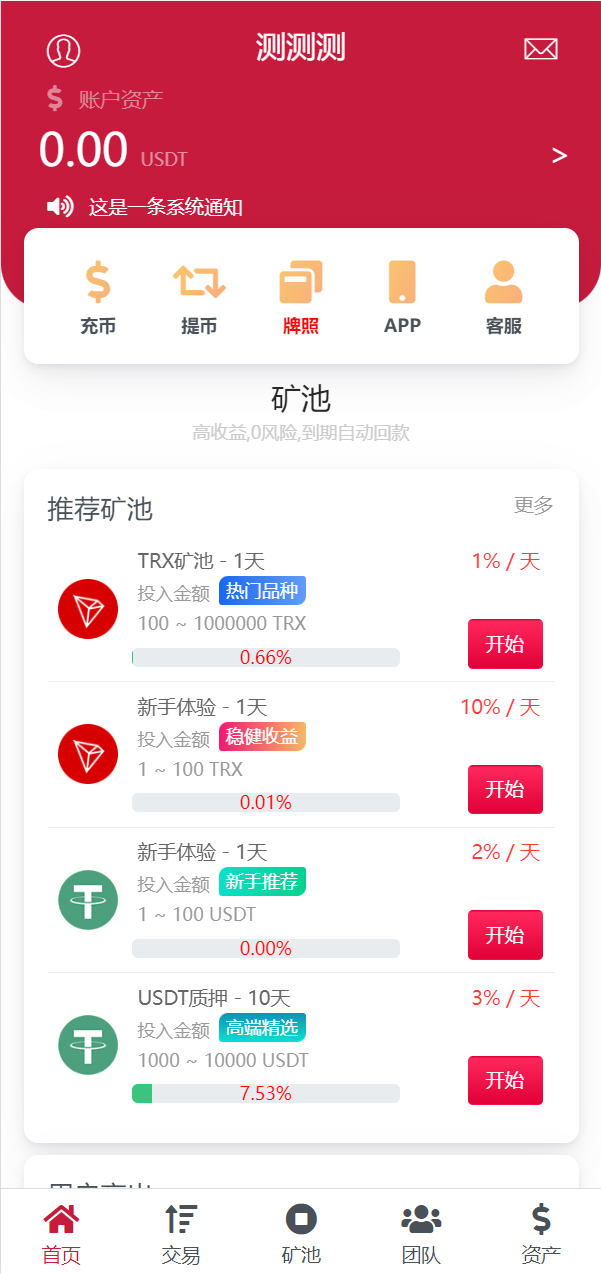 新版USDT/TRX区块链理财系统/质押挖矿/云算力矿机系统