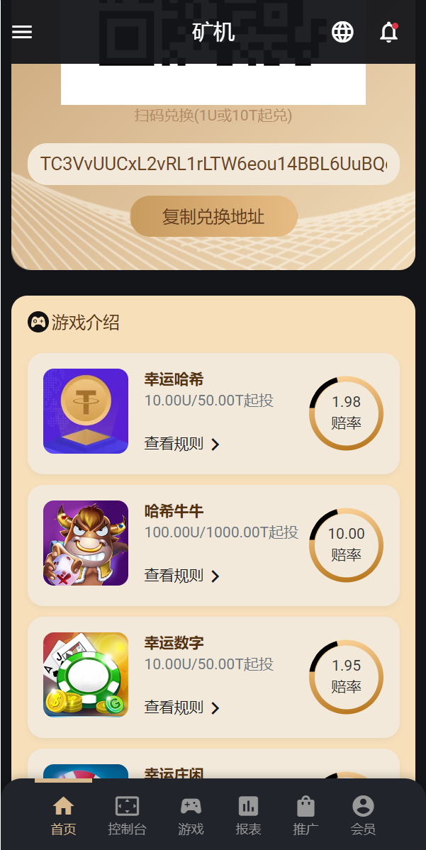 游戏有:幸运哈希、哈希牛牛、幸运数字、幸运庄闲、哈希PC10、哈希PK10