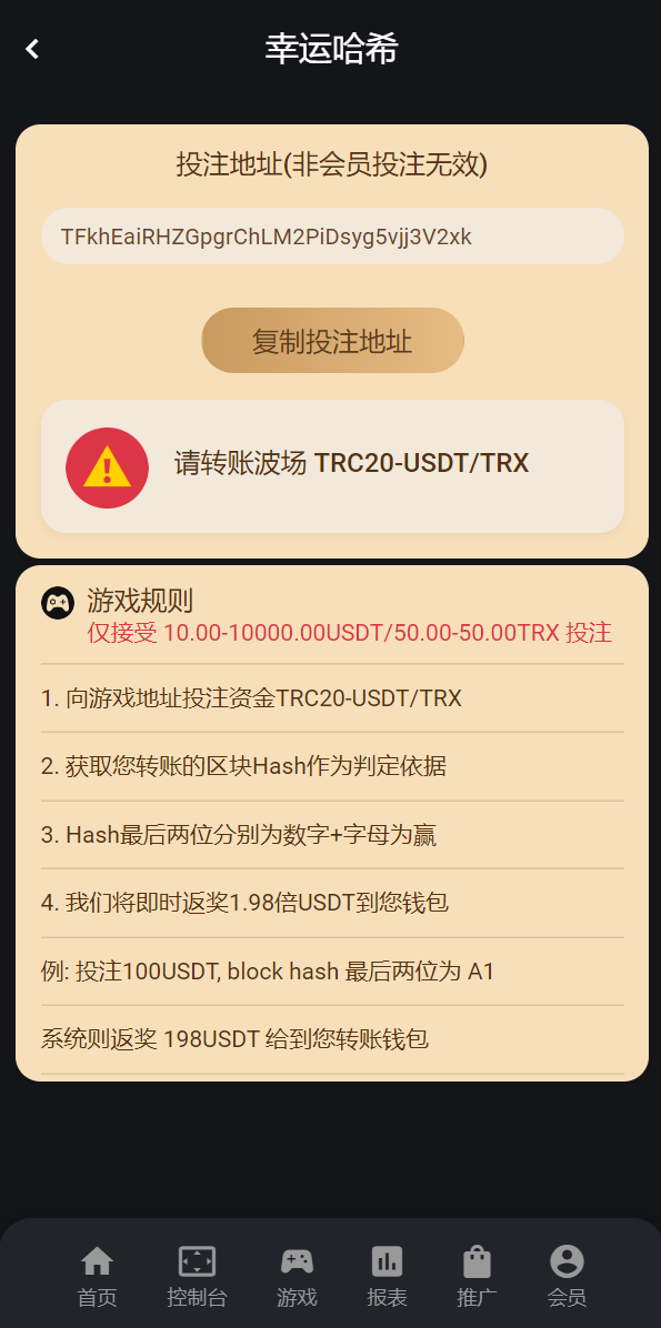 源码无忧网 » 多语言usdt/trx哈希竞彩/区块链哈希值游戏/前端html版