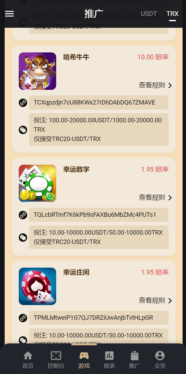 此套支持usdt、trx双币种玩法,前端为html的方便二开