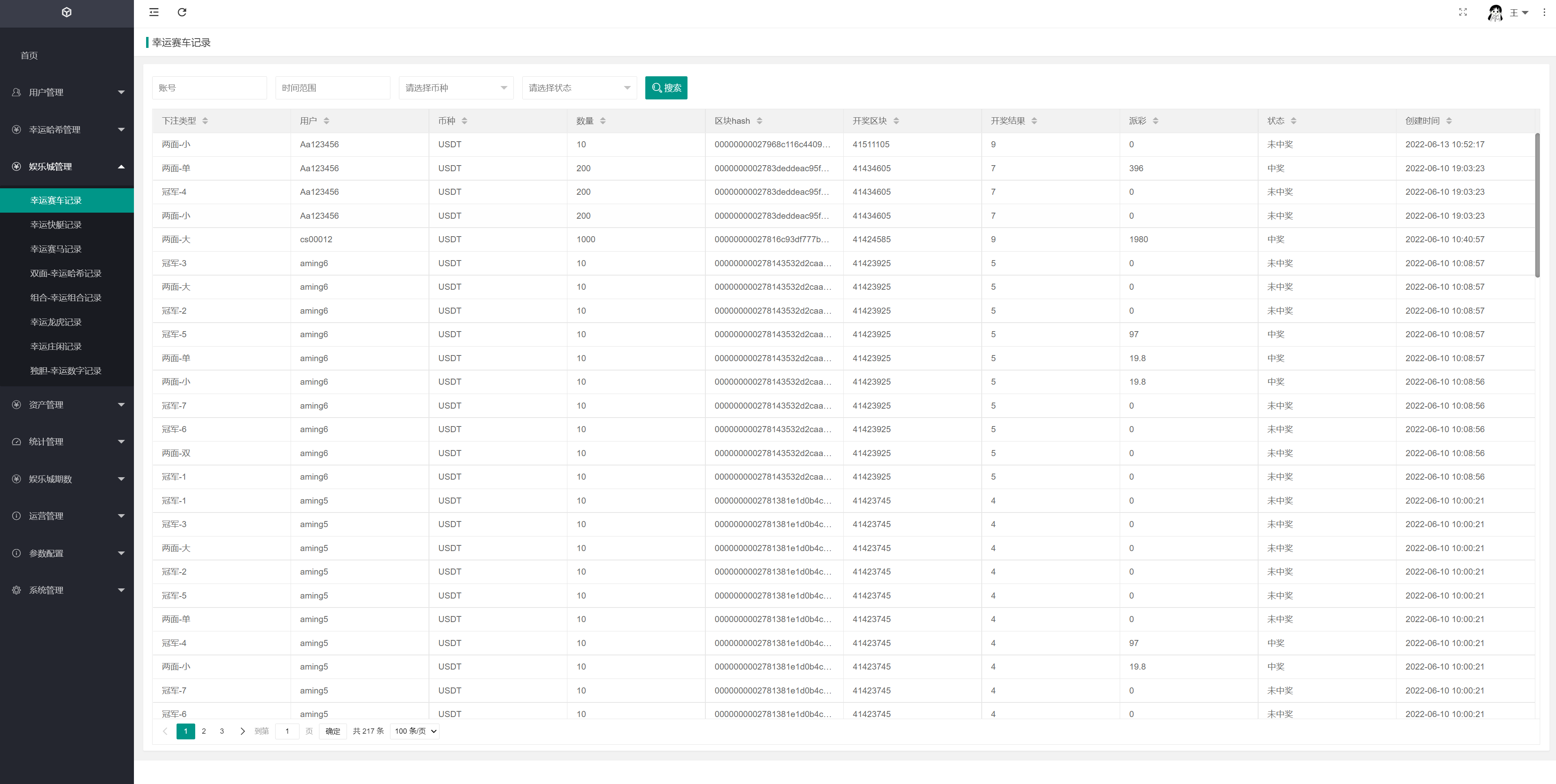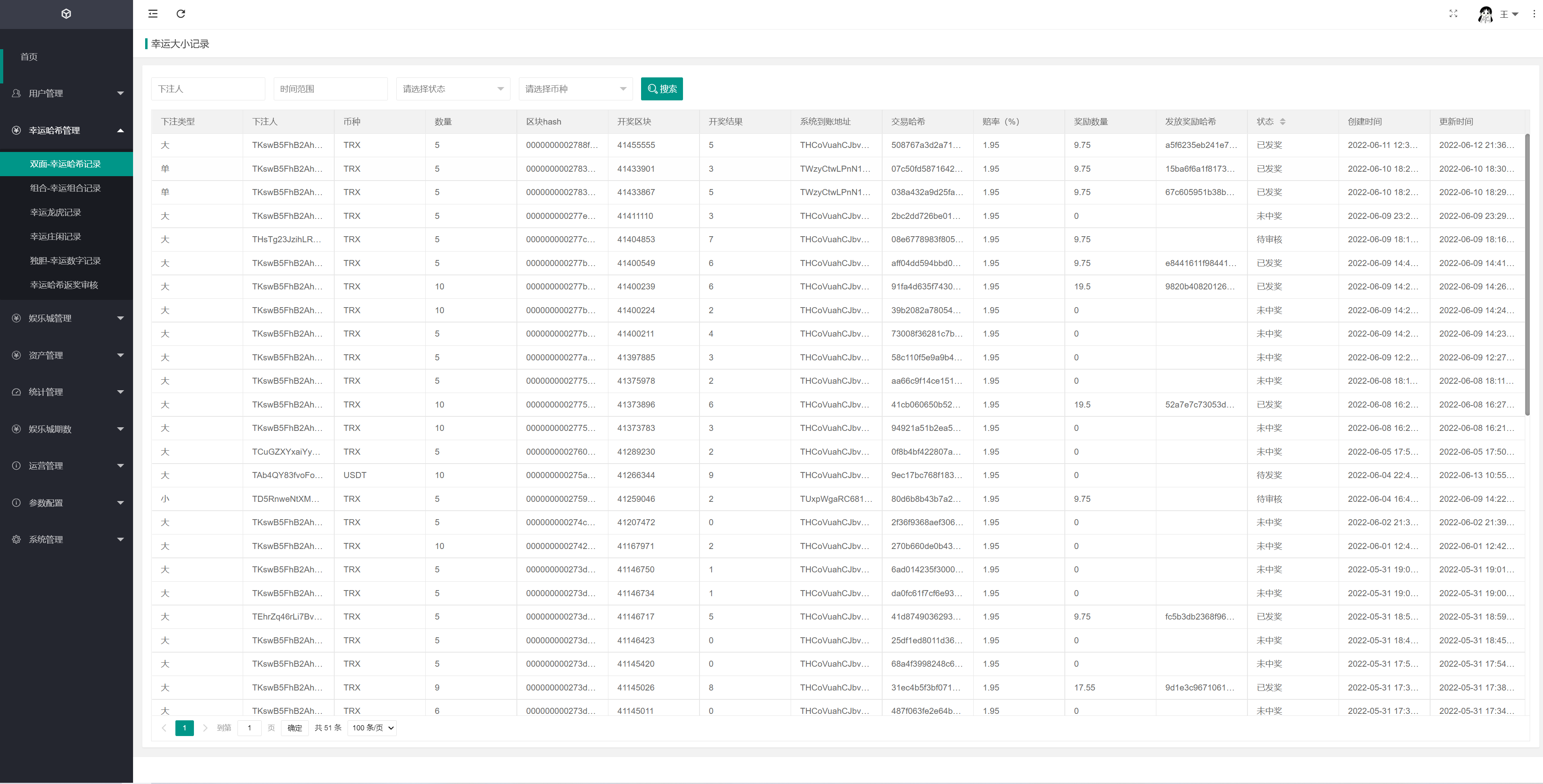 哈希玩法有:幸运大小、幸运组合、幸运龙虎、幸运闲庄、幸运数字