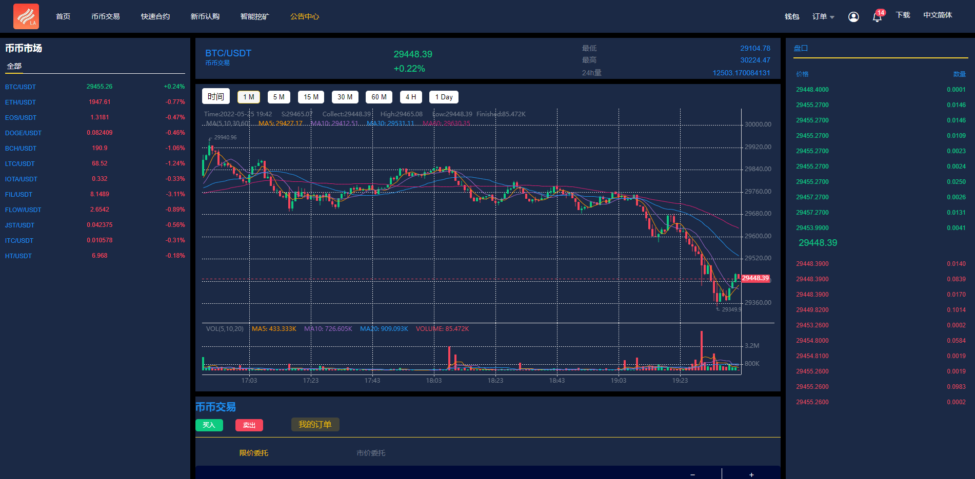 修复K线失效问题,系统8种语言,支持币币合约交易、新币申购、智能挖矿等功能