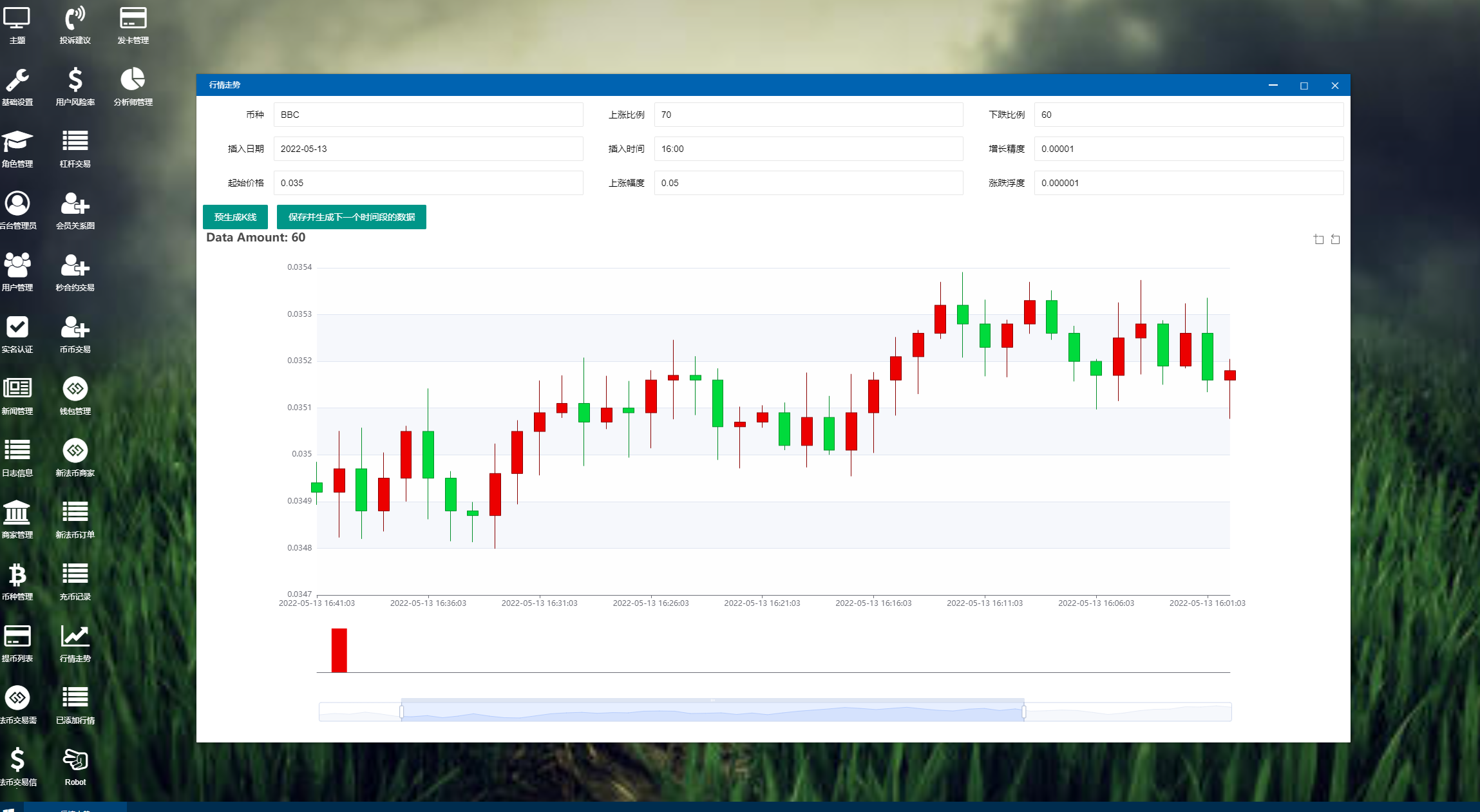 1、平台概况(实时行情、高端K线、合约交易、BI数据分析、币种统计、用户统计、交易统计、异常用户)