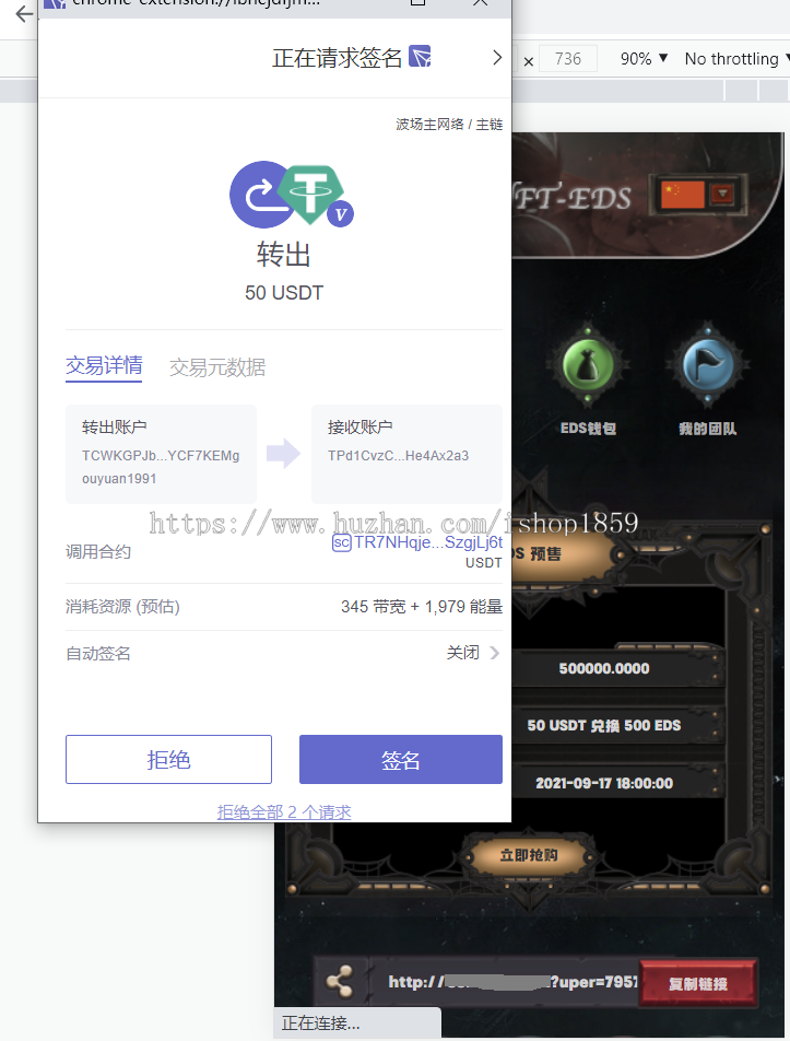 TRX链的DAPP,在TRX链钱包打开,点击抢购可以拉起TRX钱包授权转账U到后台设置的地址进行认购抢