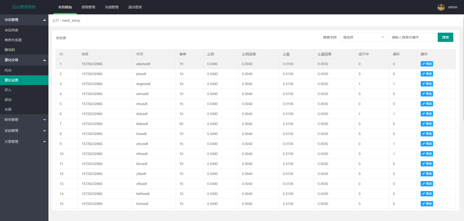 量化交易机器人马丁策略uniapp+thinkphp+workerman api