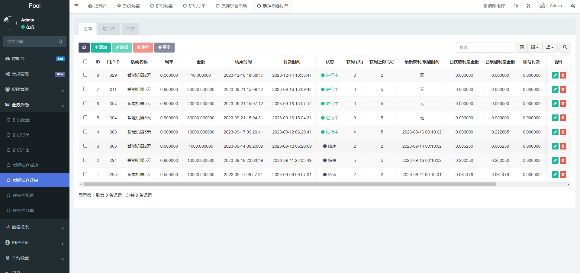 前端二开去除秒合约,只保留质押挖矿授权功能,后台完善提币功能