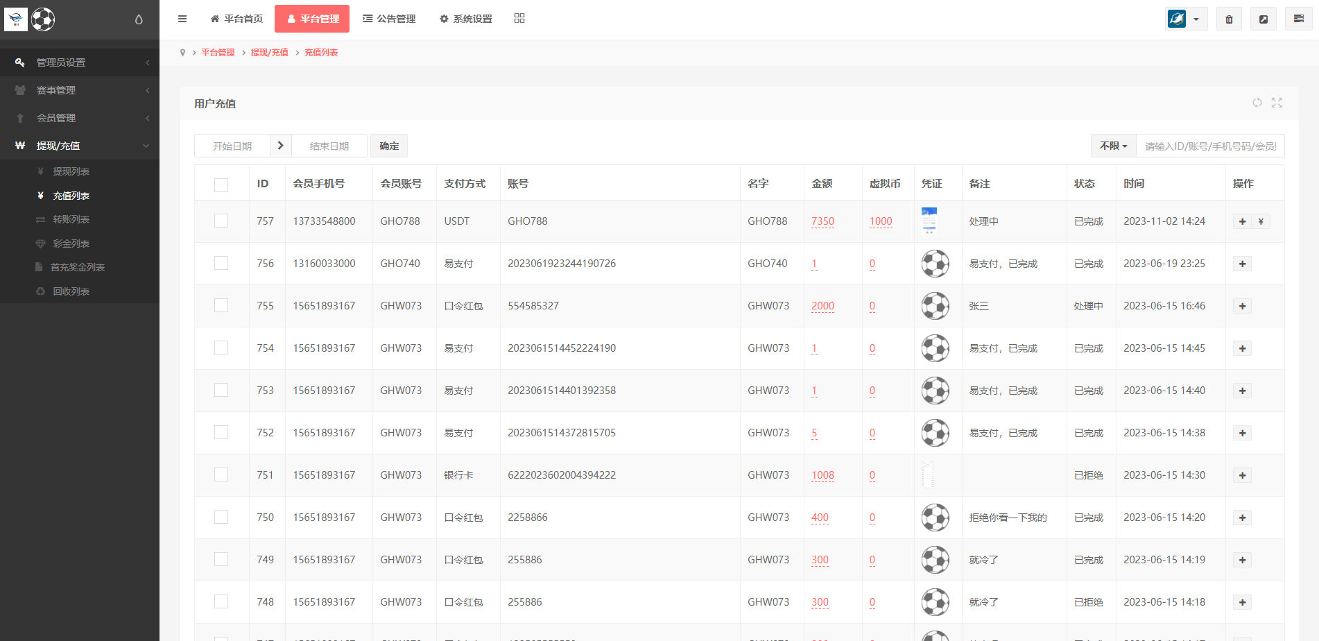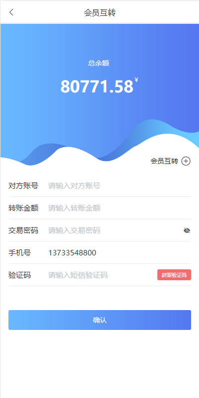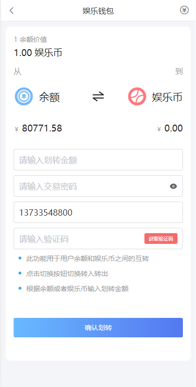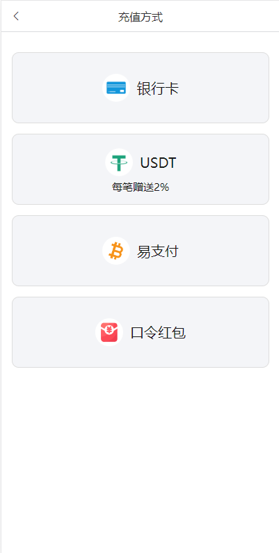 支持用户余额互转,充值方式有银行卡、usdt、口令红包、易支付,ng钱包互转余额,后台带回收功能