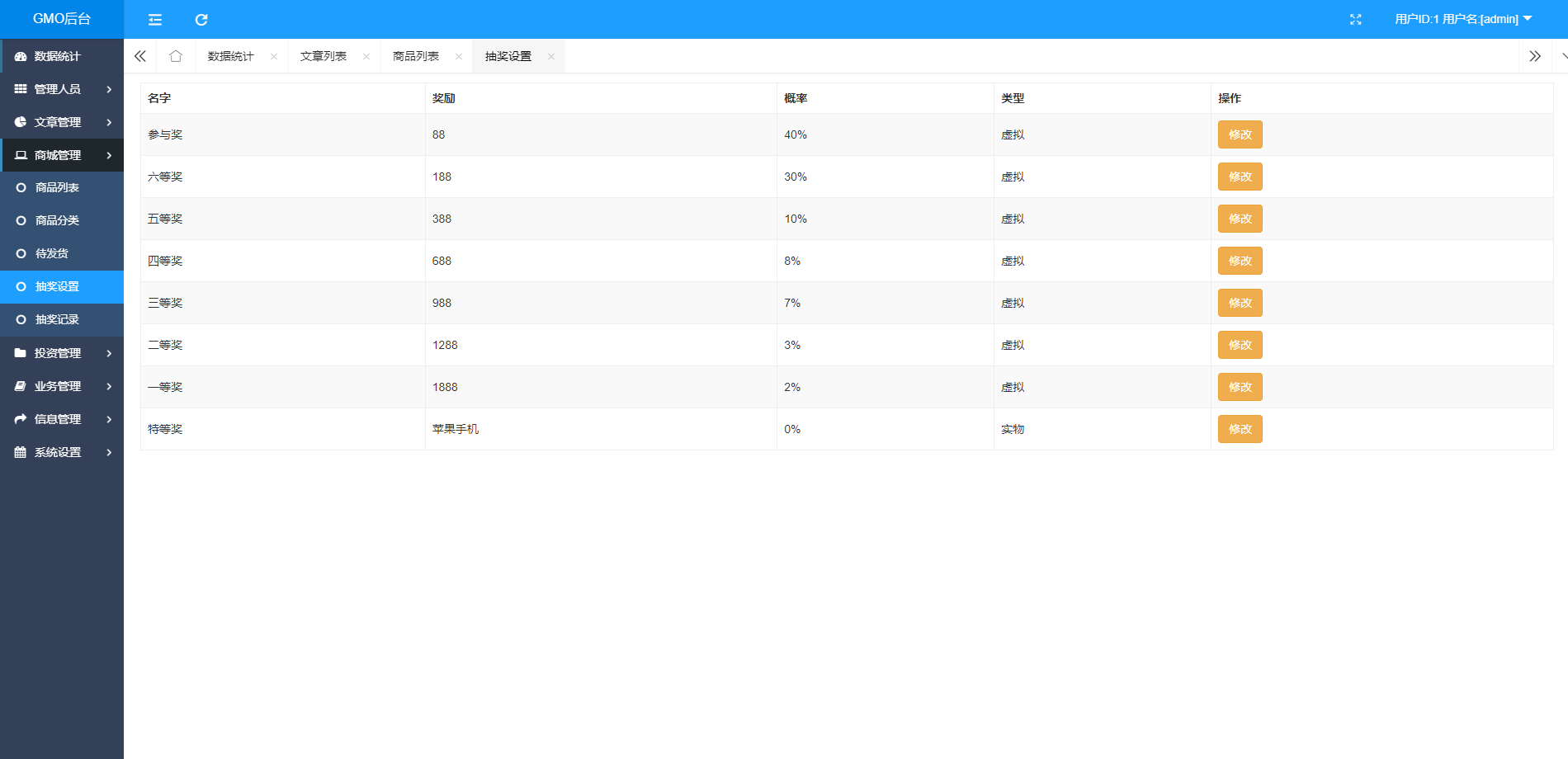 系统功能支持:签到、抽奖、积分商城、余额宝、余额互转等功能