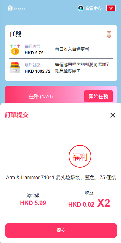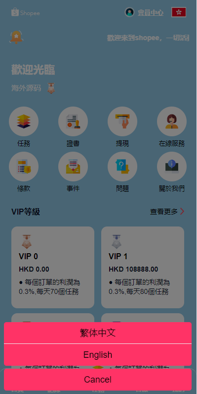 此套刷单前端UI全新设计,前端语言英语,繁体,可二开其他