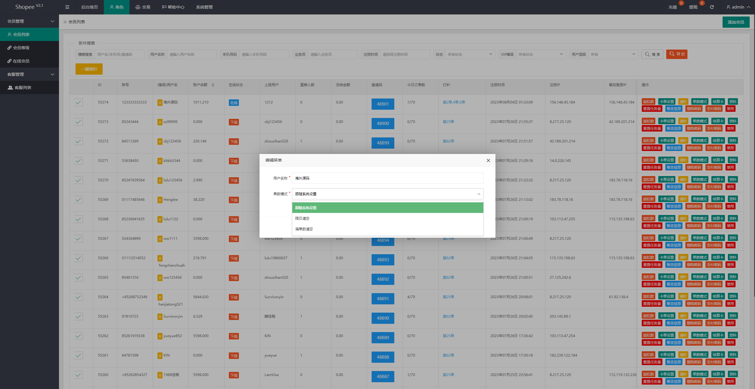 系统新增卡单、订单清空(会员满足多少单第二日清空或者是满单数后清空)等功能