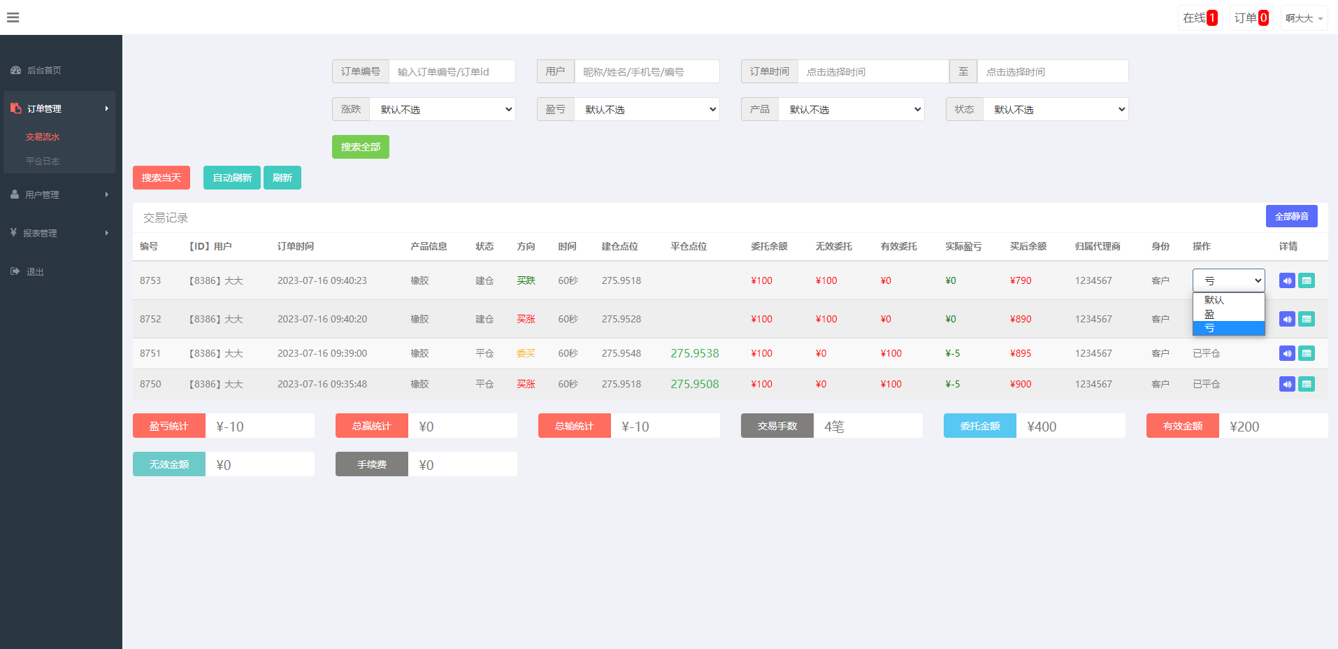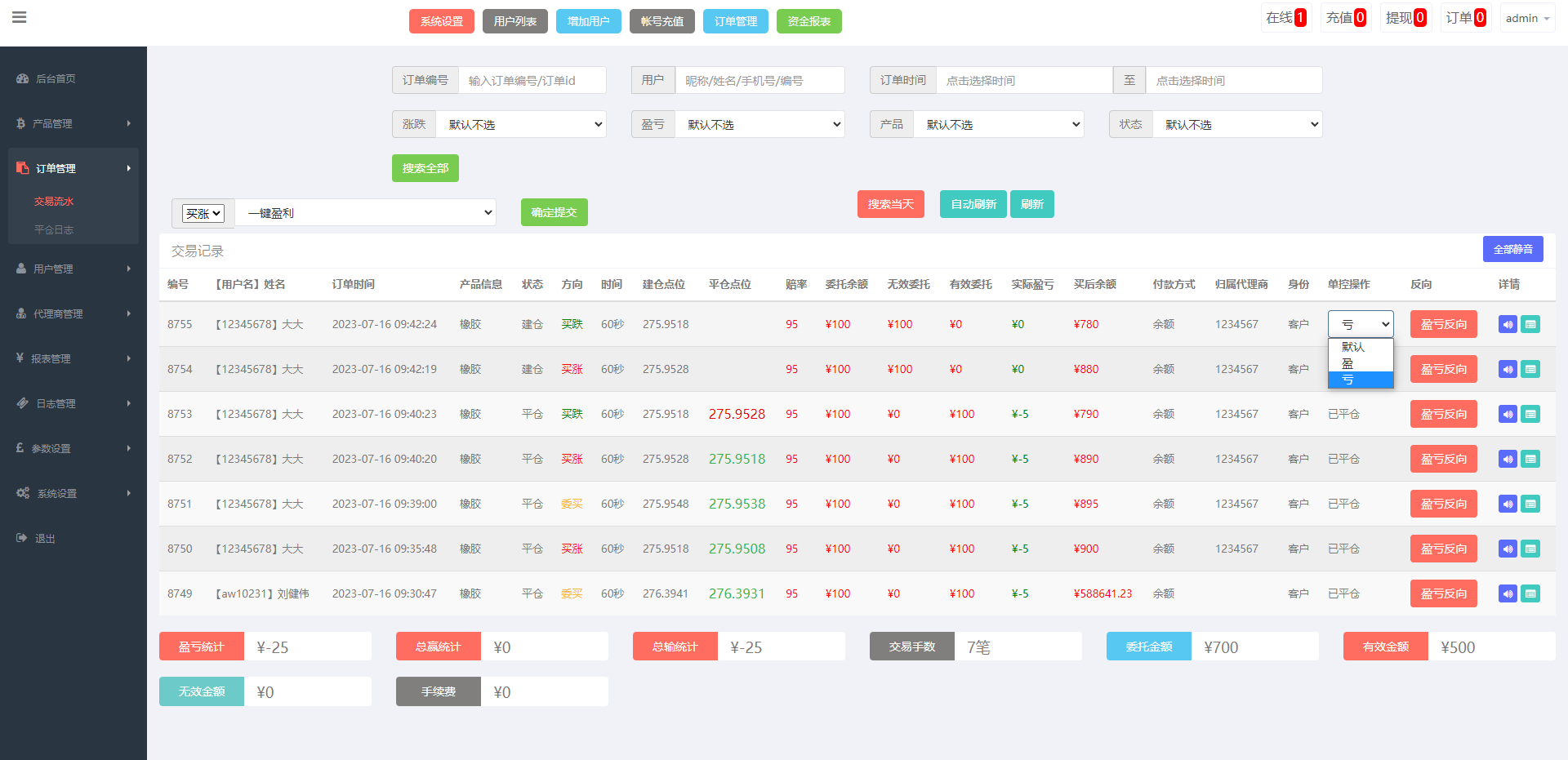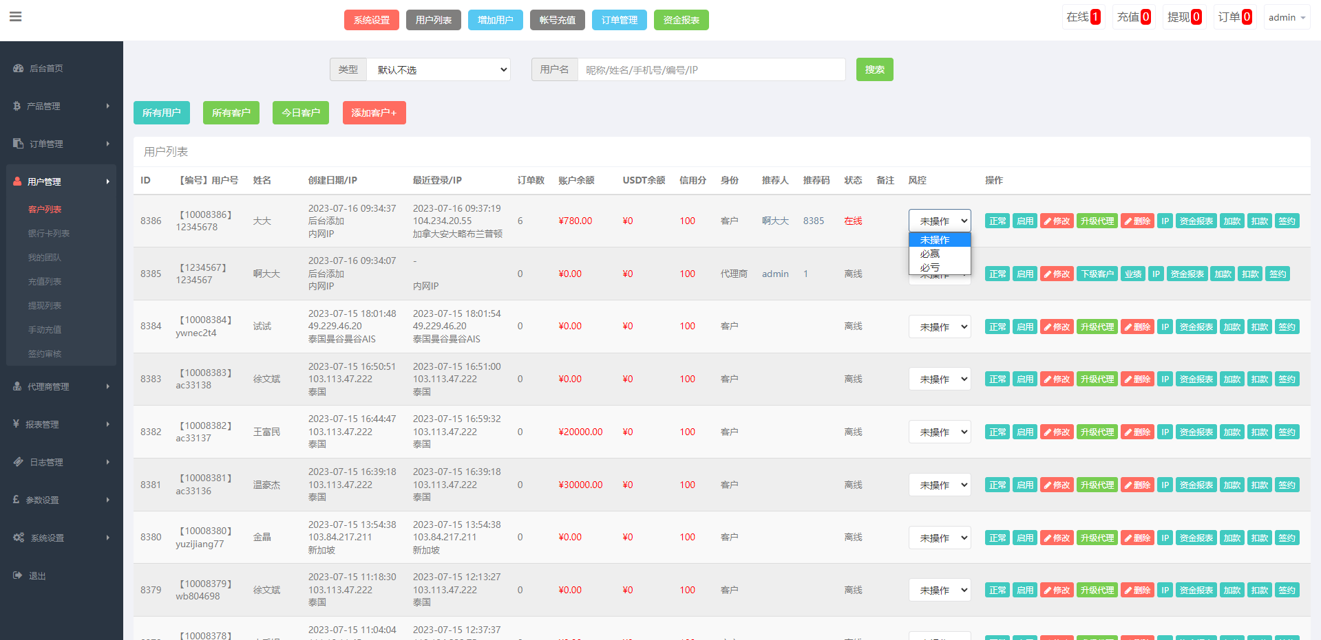 运营版微盘期货交易系统/微交易源码/代理后台/用户风控