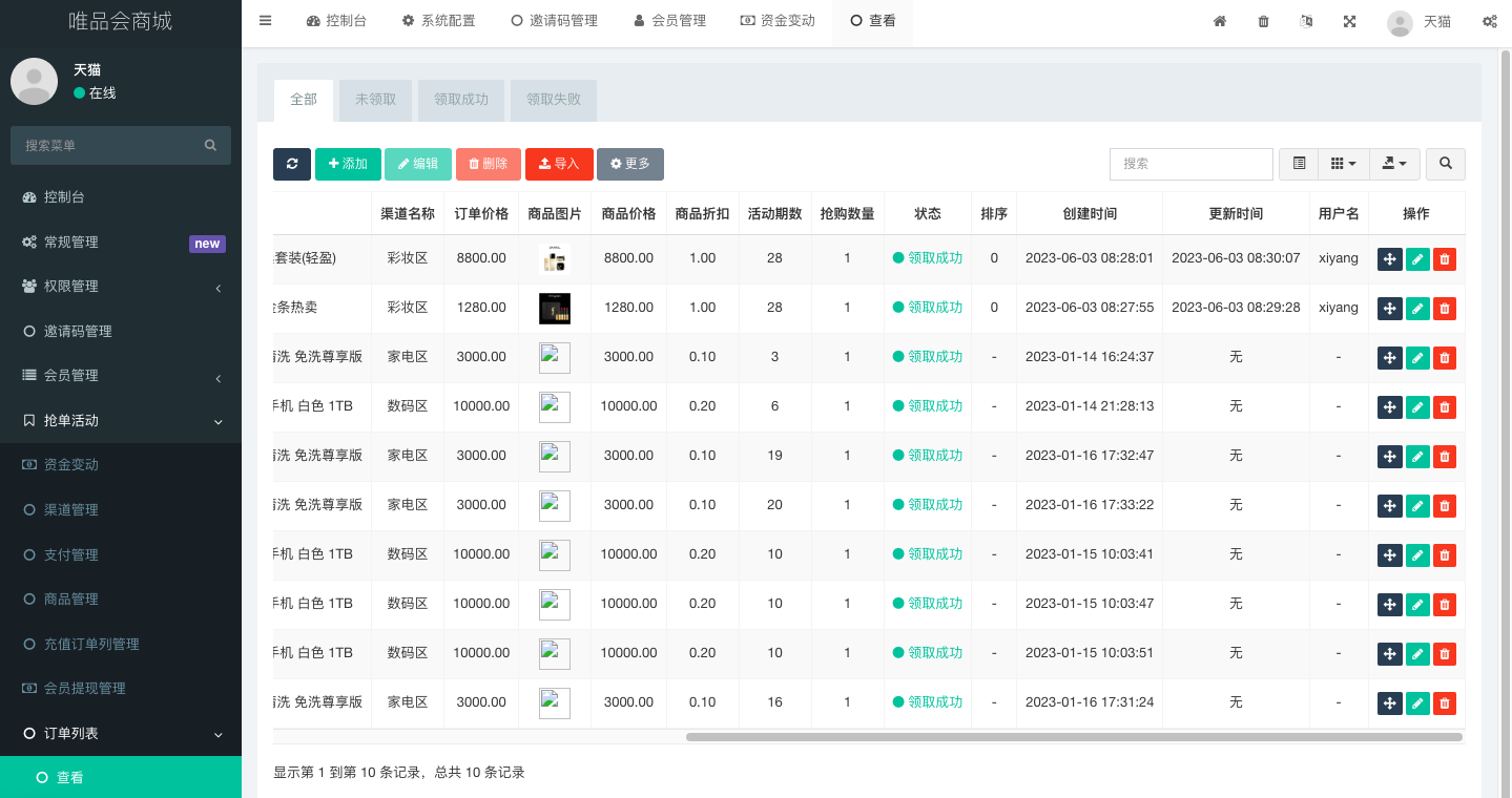 唯品会商城优惠卷投资系统,后端使用fastadmin框架