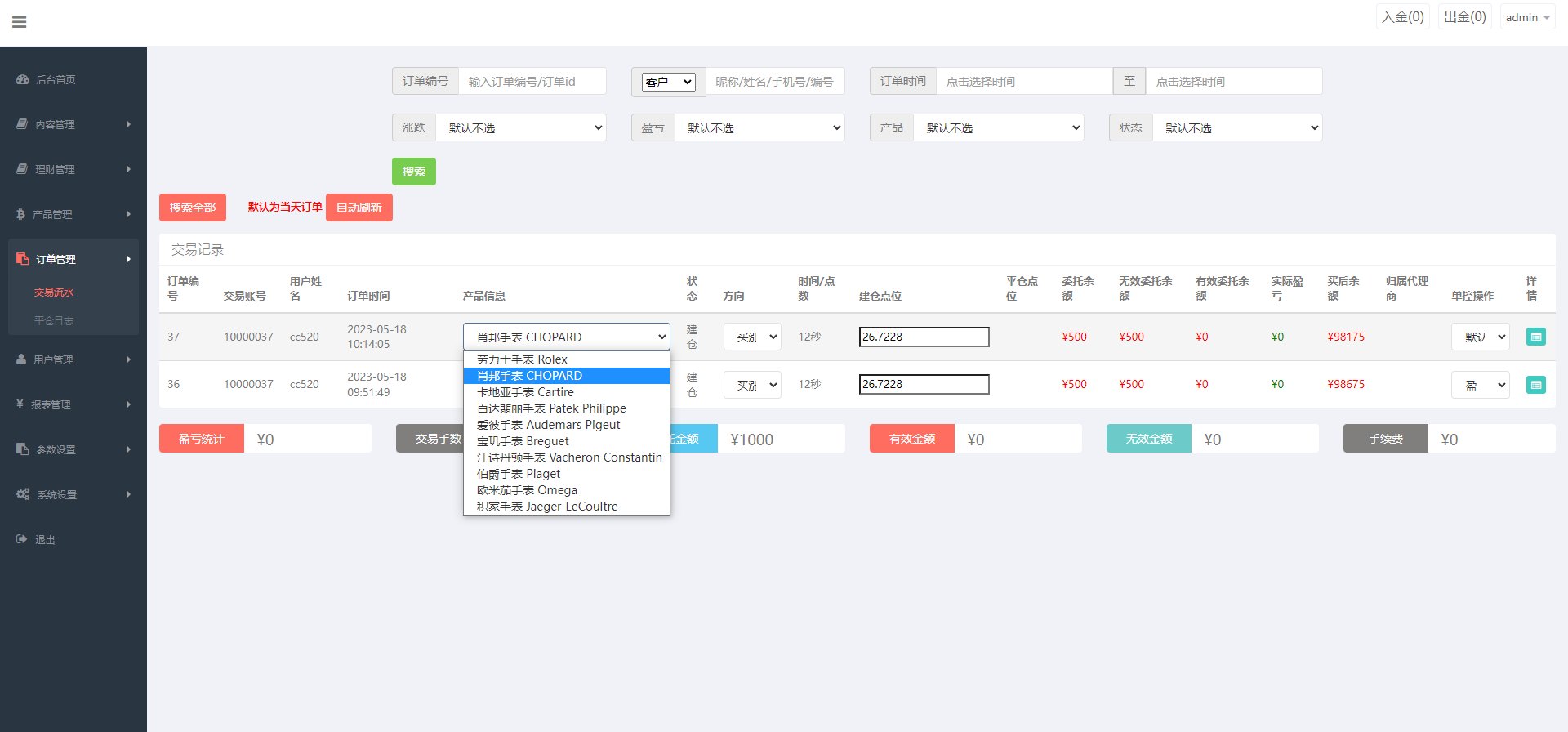 系统后台可控盈亏,功能完善,注意的是K线是坏的需要修复(可付费修复)