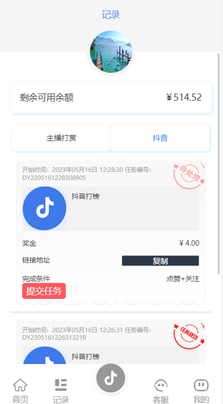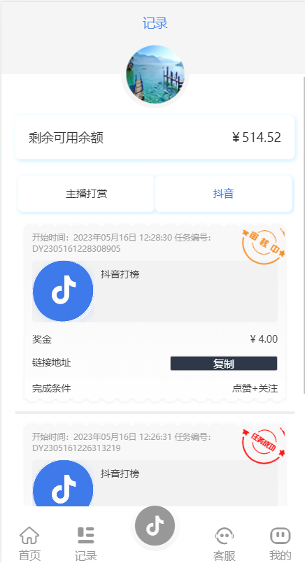 新UI抖音打赏抢单刷单系统/抖音任务系统/手动自动抢单刷单