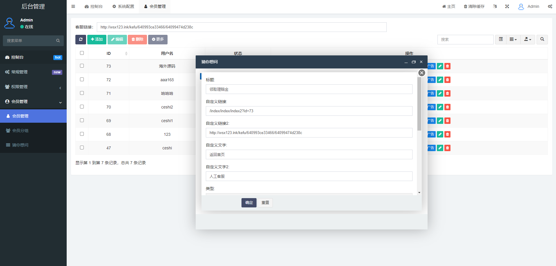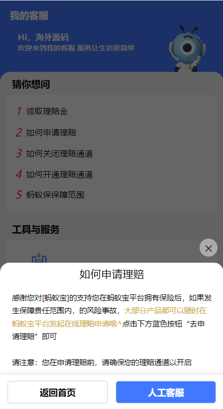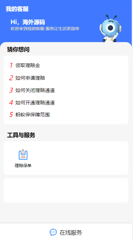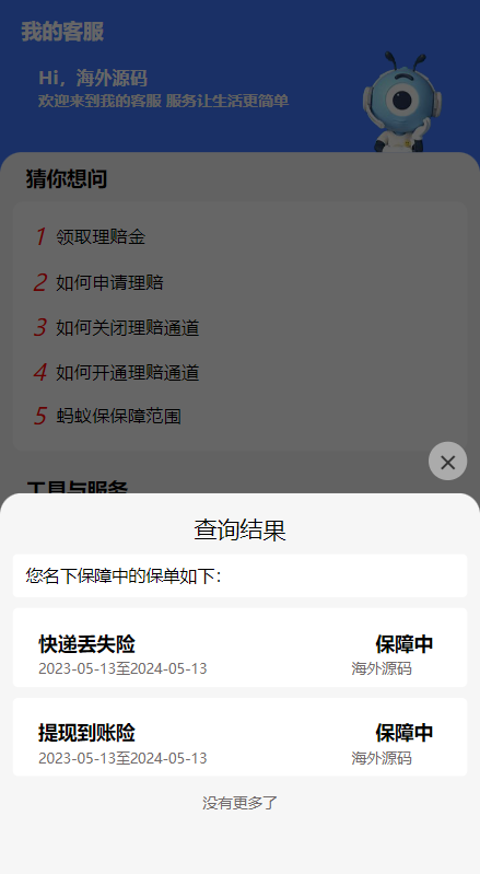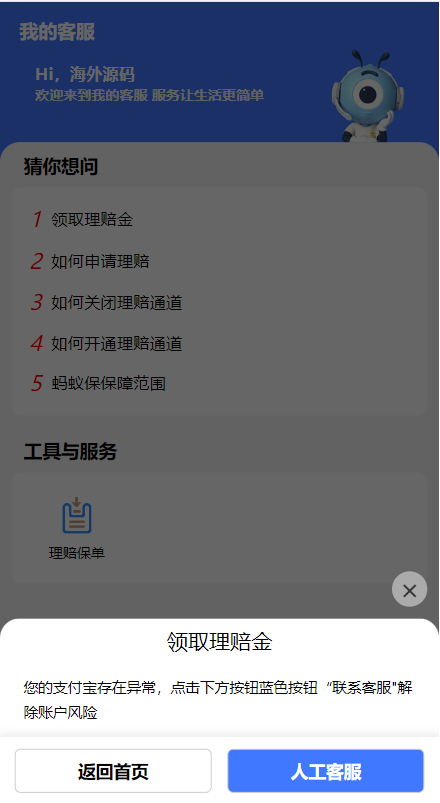 一款支付宝理赔系统,每个用户可单独设置客服跟理赔选项内容