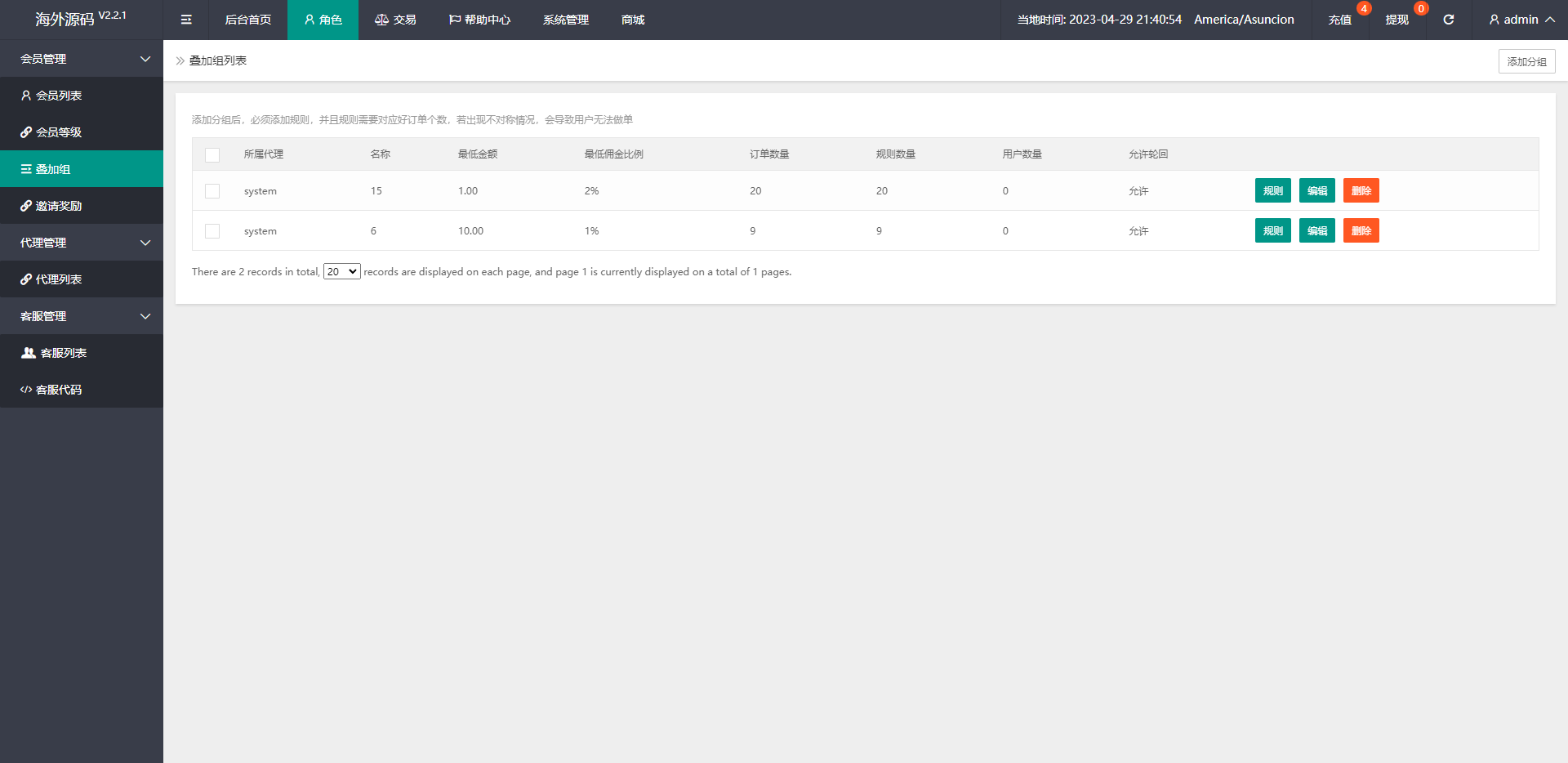 系统支打针、叠加组、余额宝、时区设置等功能