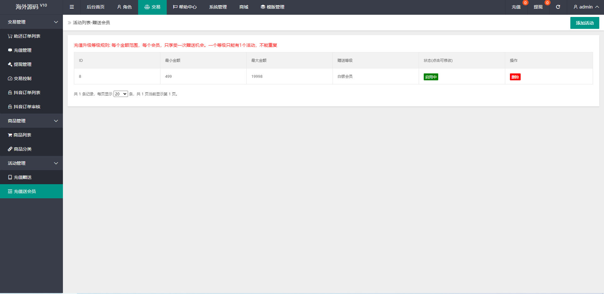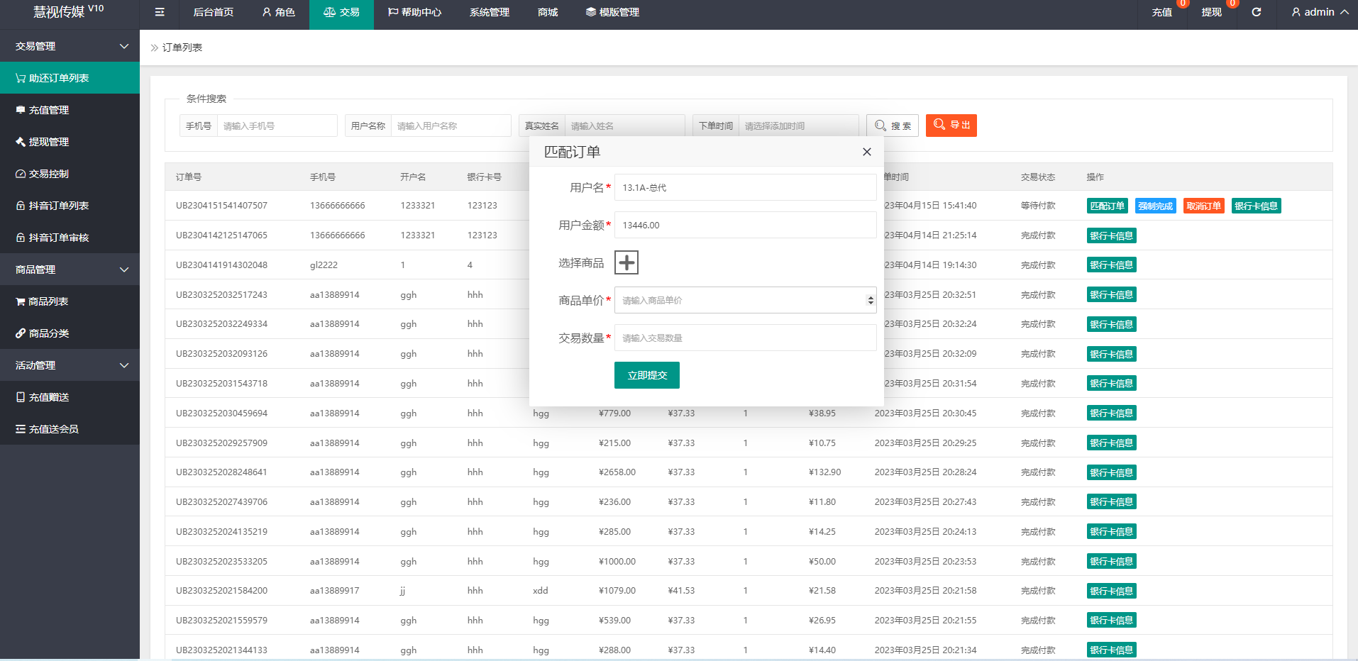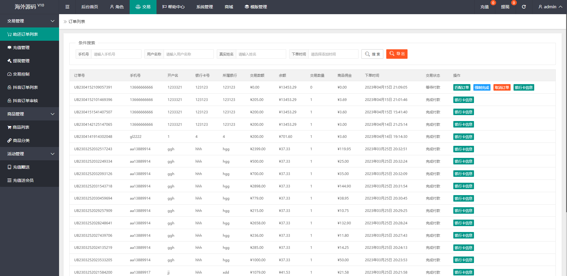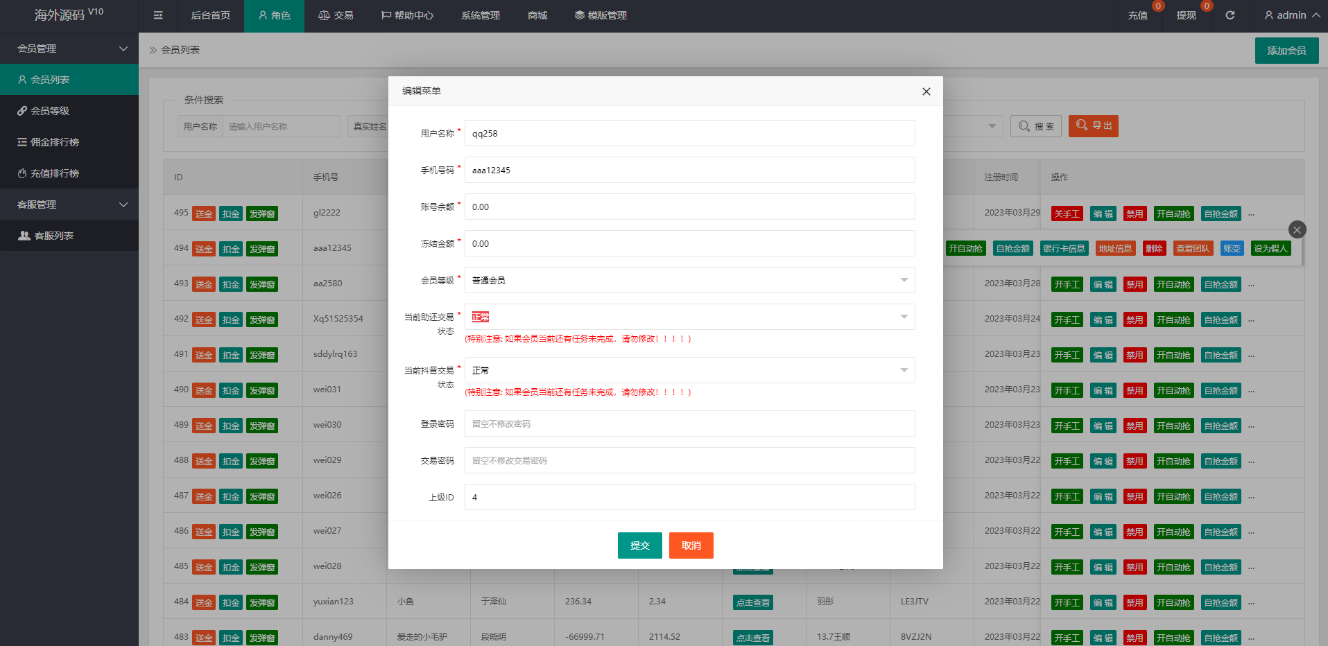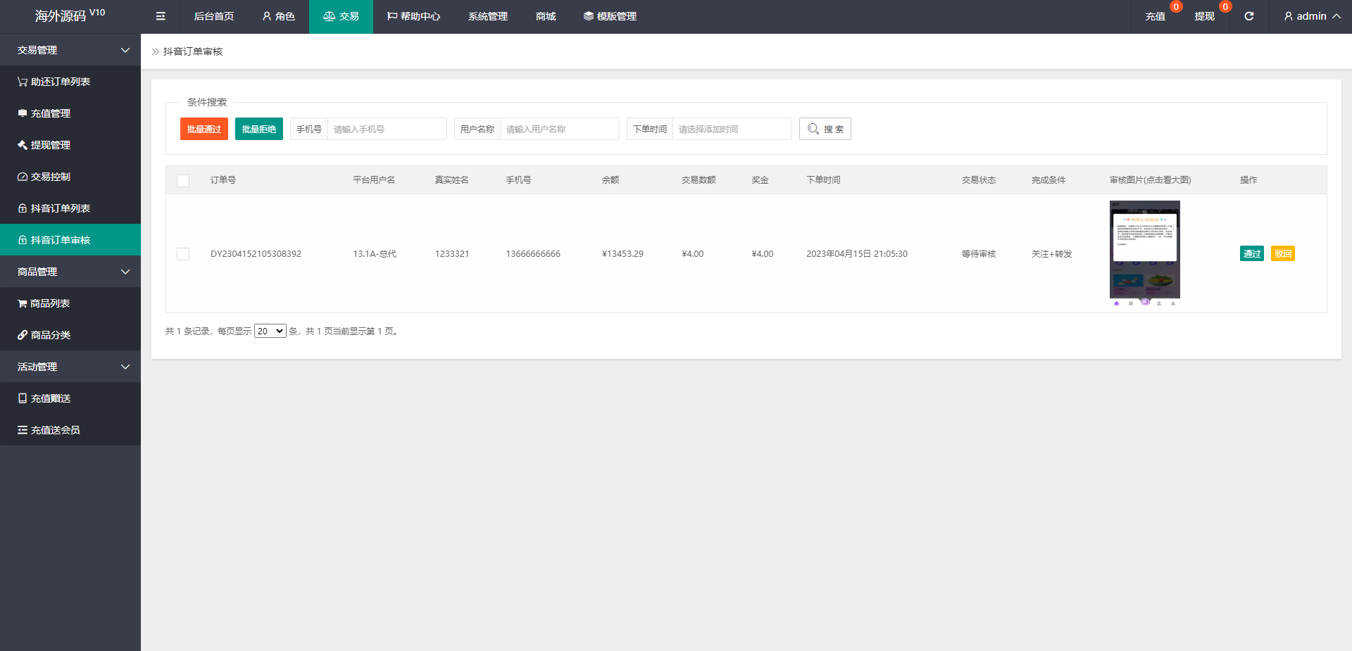 手动刷单后台可设置用户订单金额等,新增了抖音玩法前端提交后台审核,系统新增多个功能
