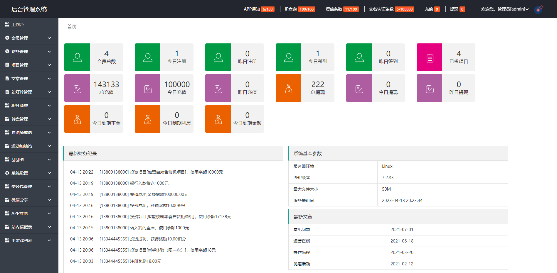系统前端带多个小功能,项目支持后台随意修改,自带多个小游戏