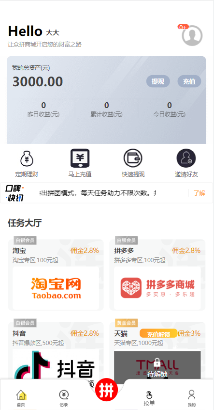 抢单拼团回购系统/抢单刷单源码/余额宝/订单自带匹配系统