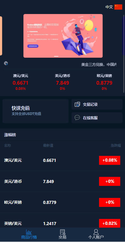 前端是双语言(支持新增多语言),产品带外汇跟虚拟币,K线正常使用
