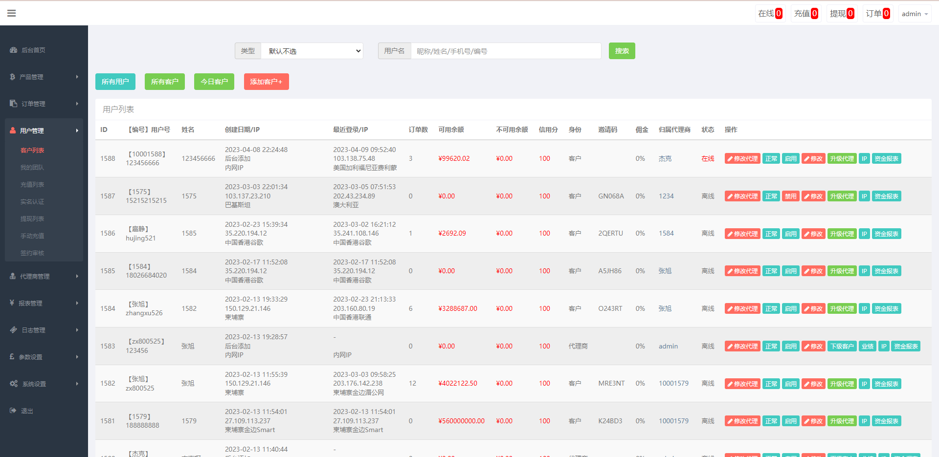 此套是重构版的汇汇通系统,框架也整体优化重构了,新增了代理后台