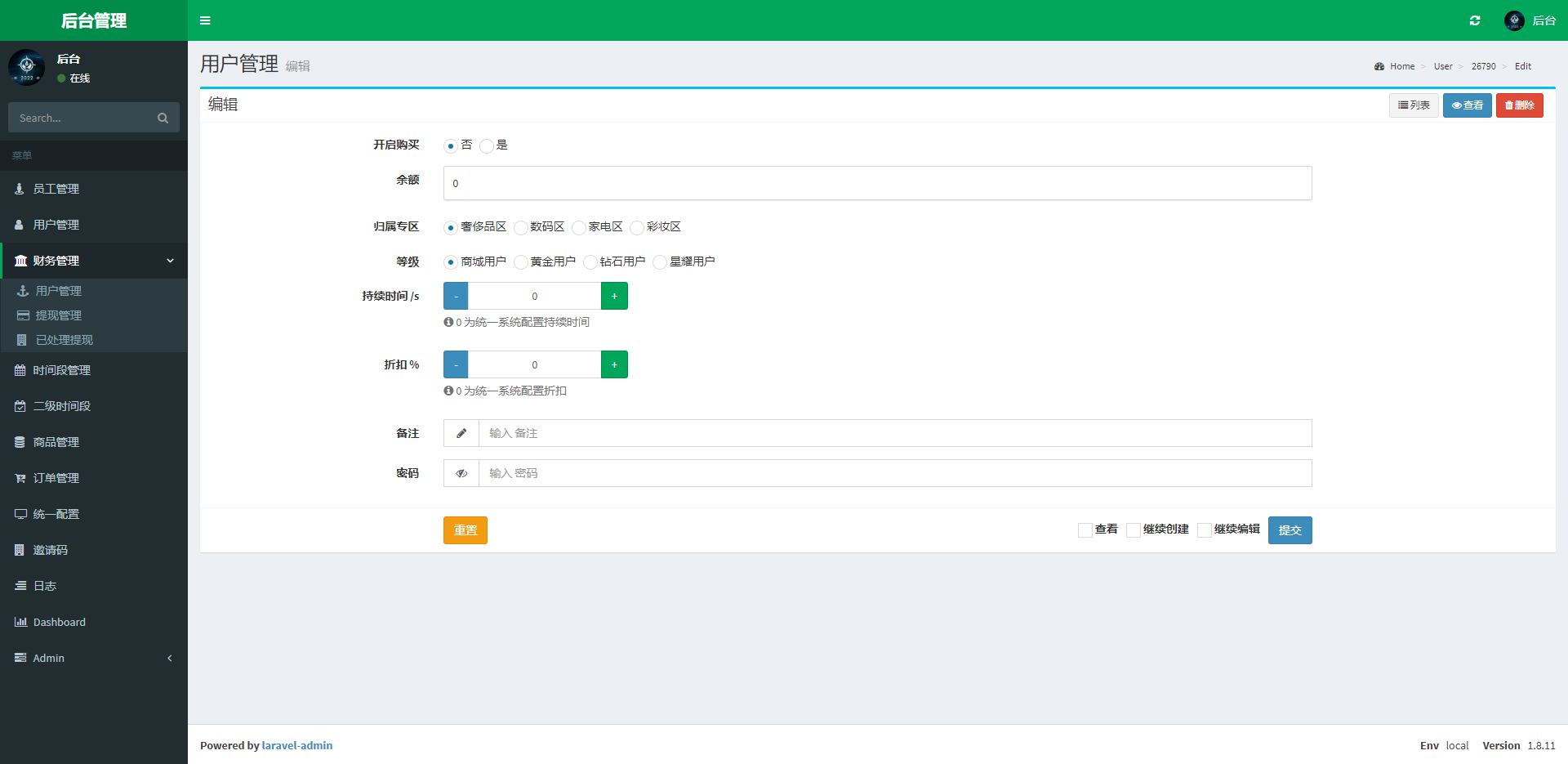 系统跟上次的苏宁是差不多的功能,前端UI差不多的,不过后端是laravel5框架