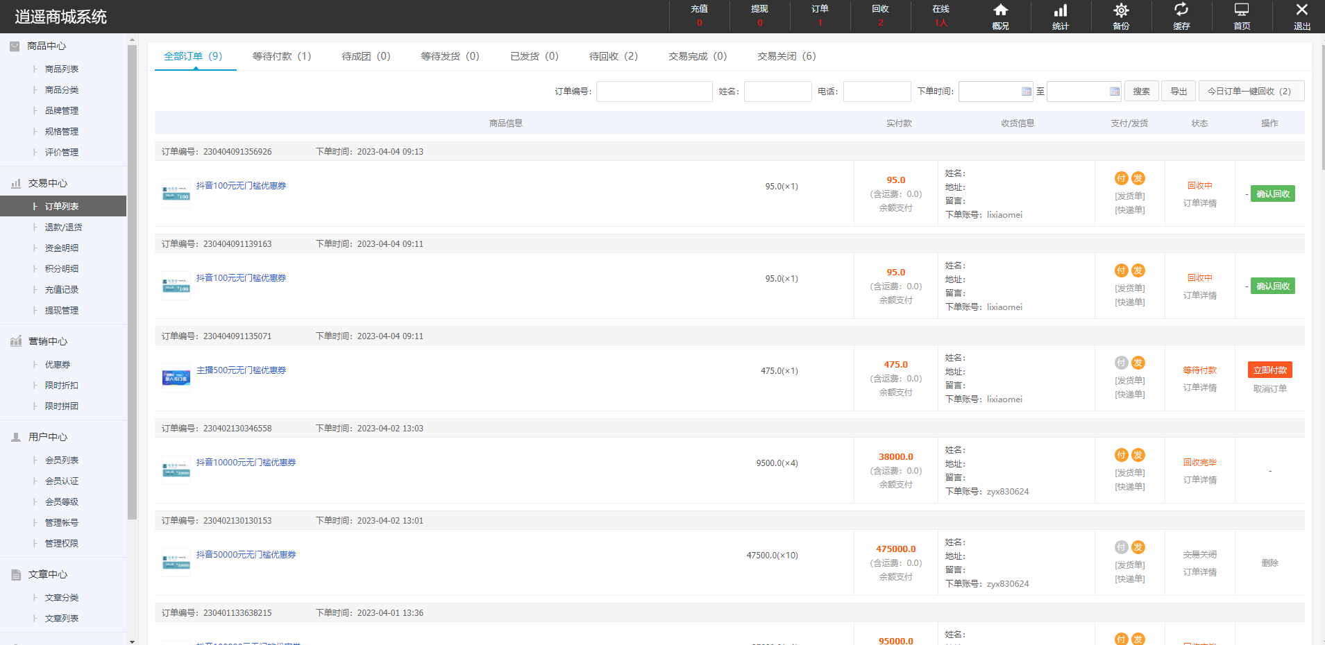 定制版抖音卷系统/抖音电商卷抢购回收/抖音电商投资理财