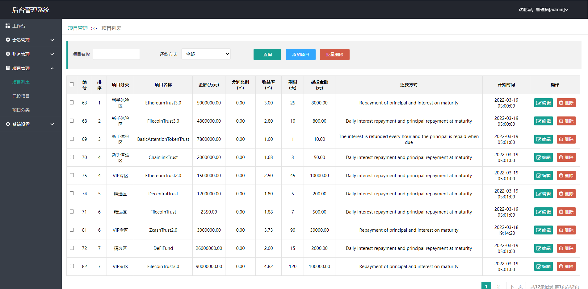 此套是以前客户运营下来的海外投资系统,前端产品可更改