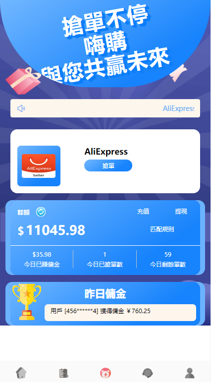 源码无忧网 » 海外抢单刷单系统/派单/分组杀/余额宝/订单自动匹配系统
