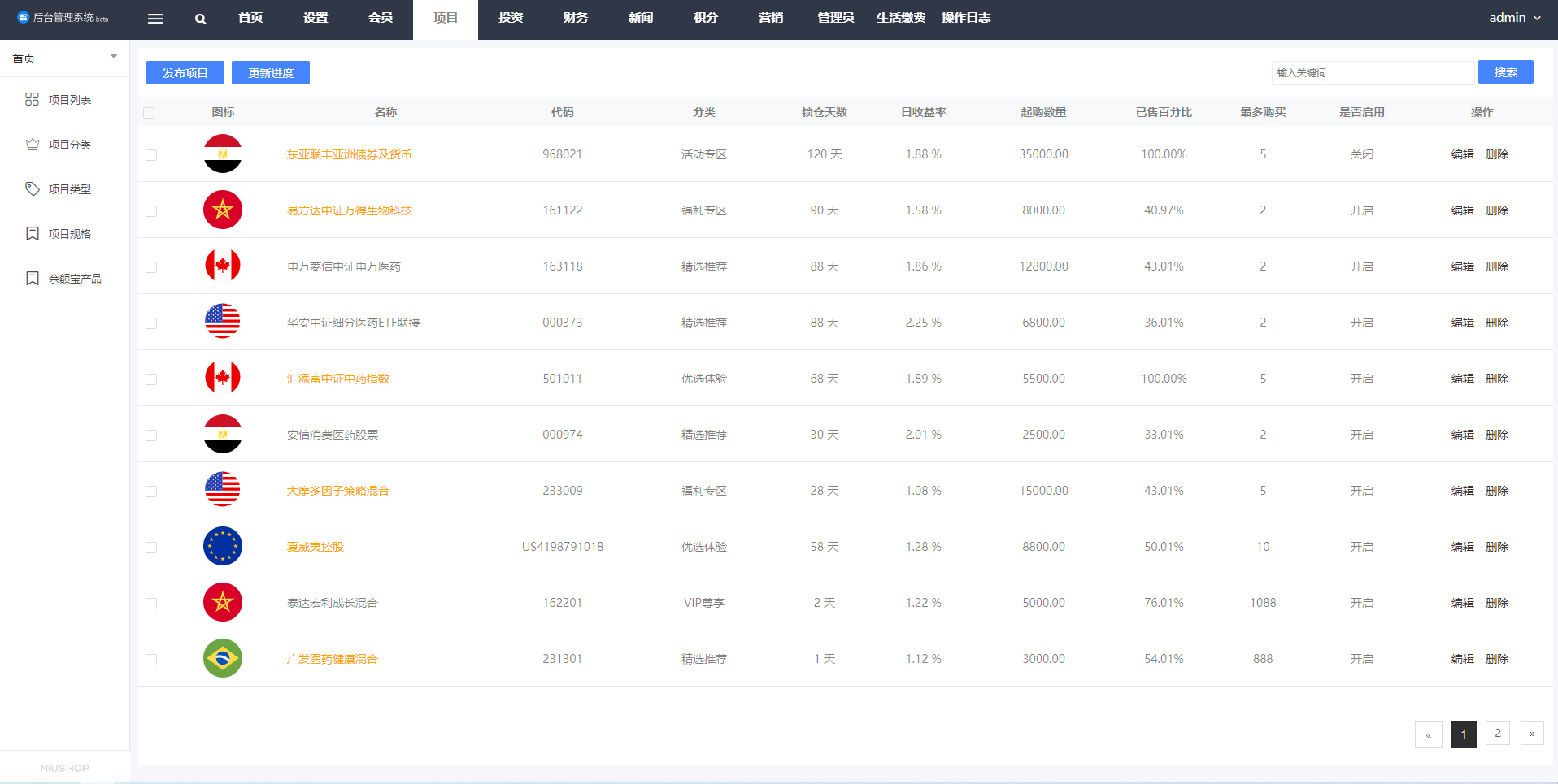 算是一套比较不错的下项目投资系统,系统是thinkPHP框架前端html的