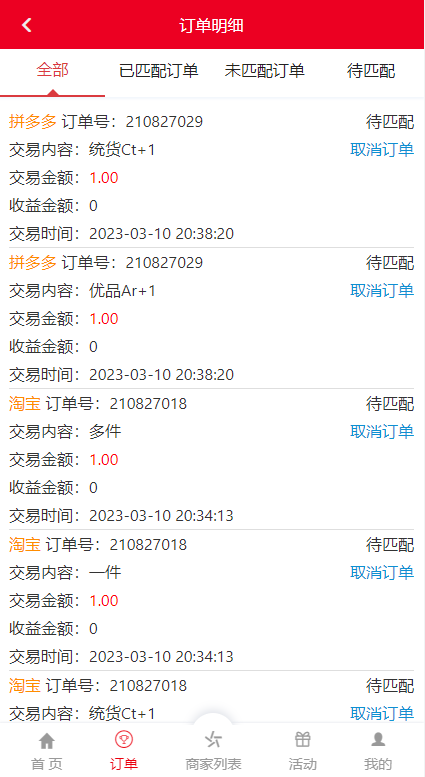 伪商城刷单系统/订单自动匹配系统/带预设/代理后台