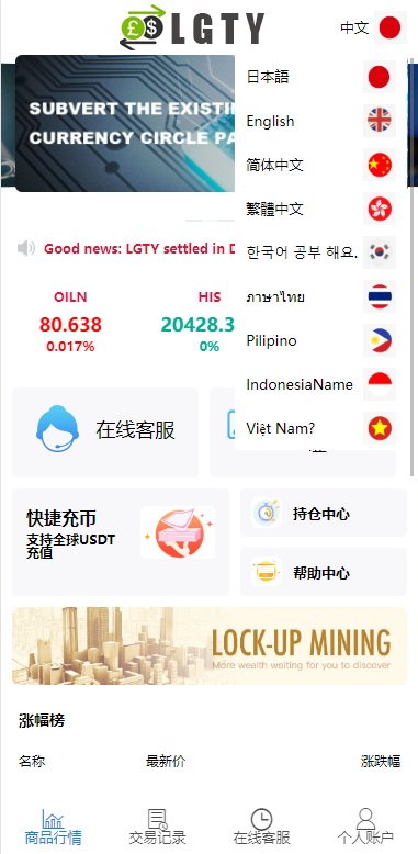 此套系统是别人二开仿交易所的UI,前端九种语言