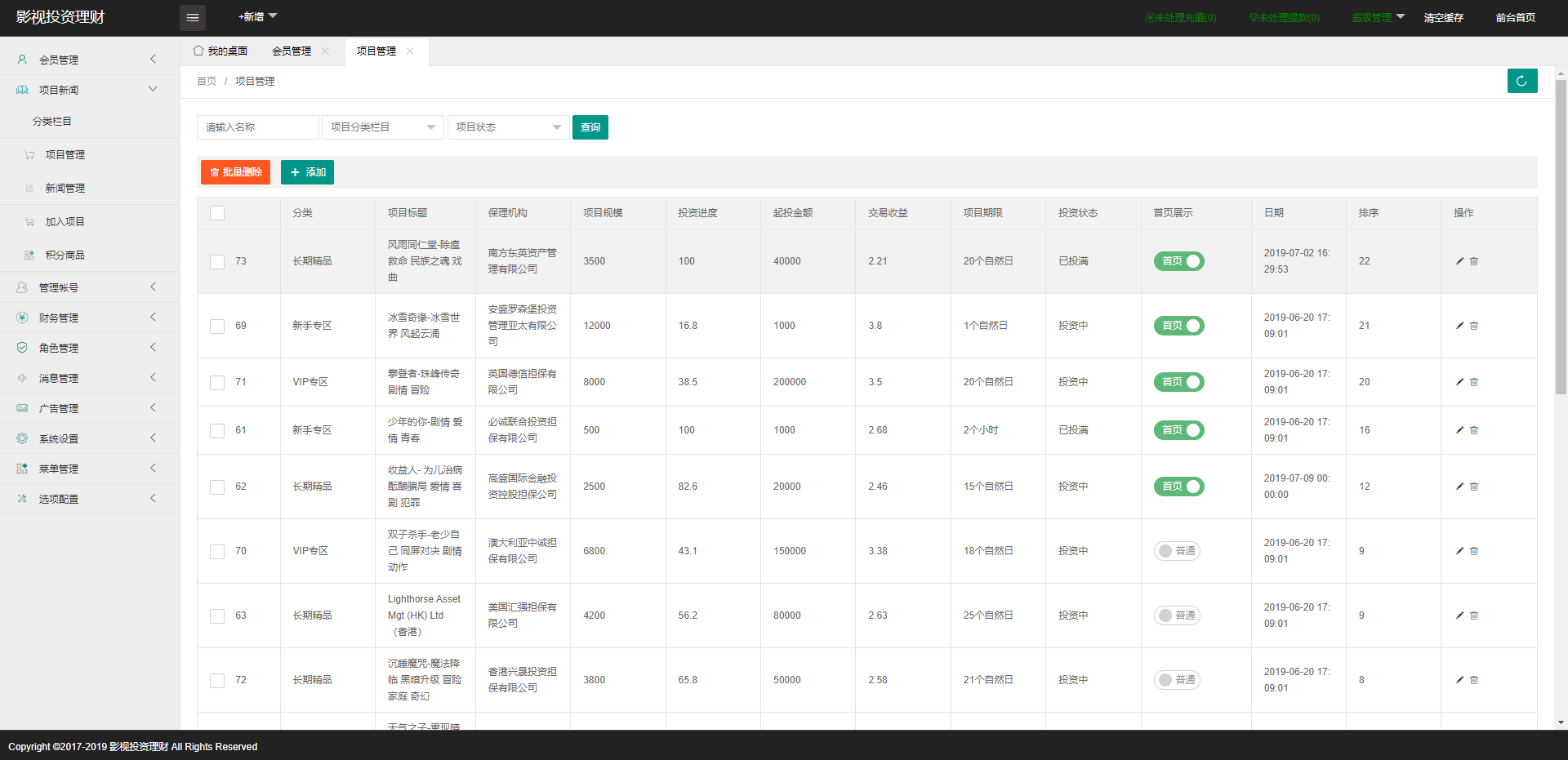 经典版影视理财系统/影视投资众筹系统/投资理财源码
