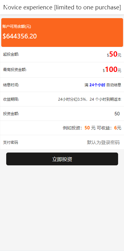 1、新手体验投资项目:每日返息,到期还本(投资期限短,利息高)