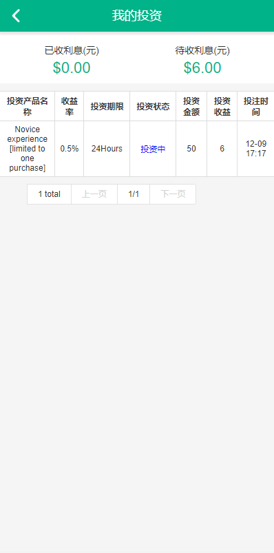 分红模式: 1、每小时返息,到期还本 2、每日返息,到期还本 3、每周返息,到期还本 4、每月返息,到期还本 5、每日得利,保本保息 6、到期还本还息