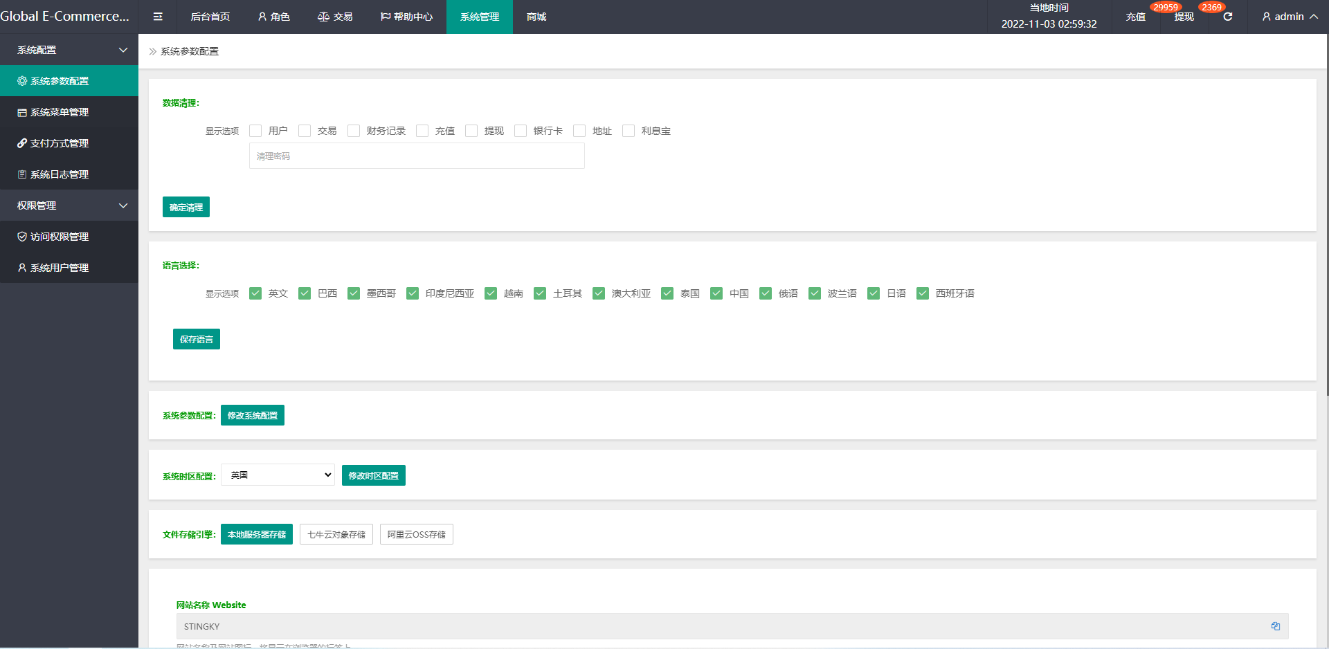 全新定制UI,前端多语言后台可控制,可设置默认语言和默认时区