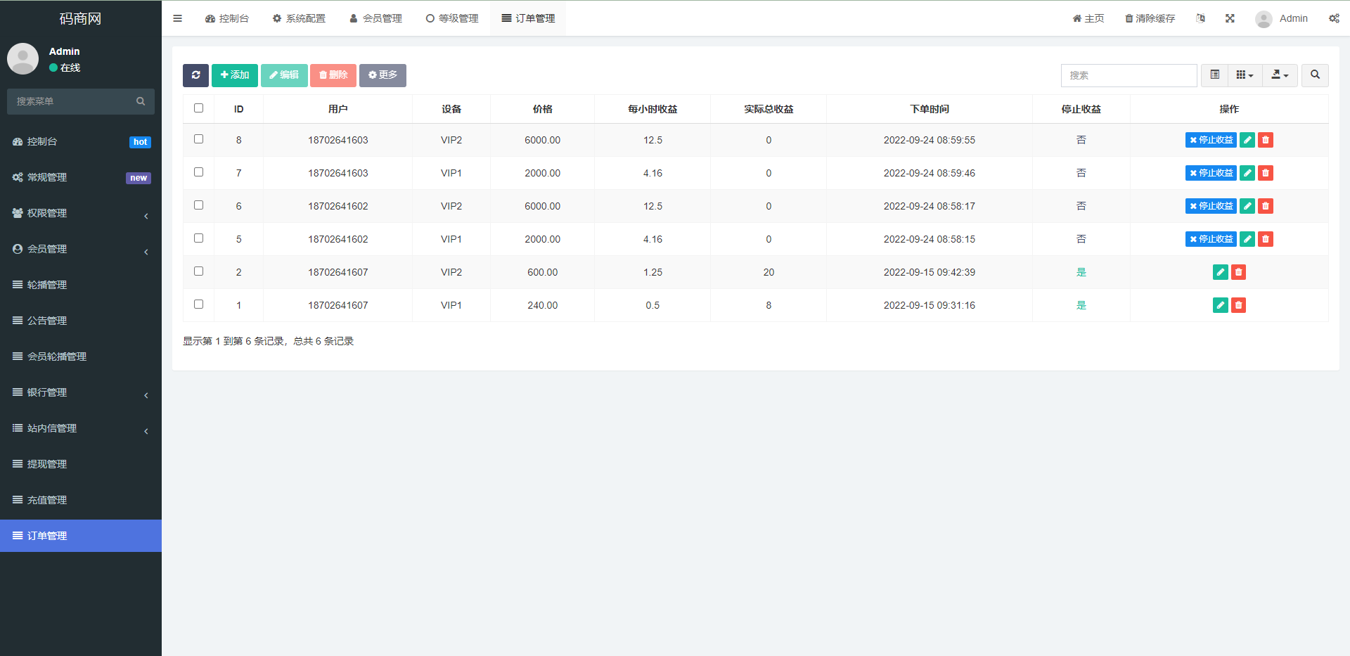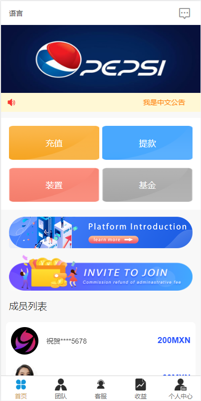 源码前端是十种语言,此套系统功能比较简洁只有个投资,然后一个三级分销推广的