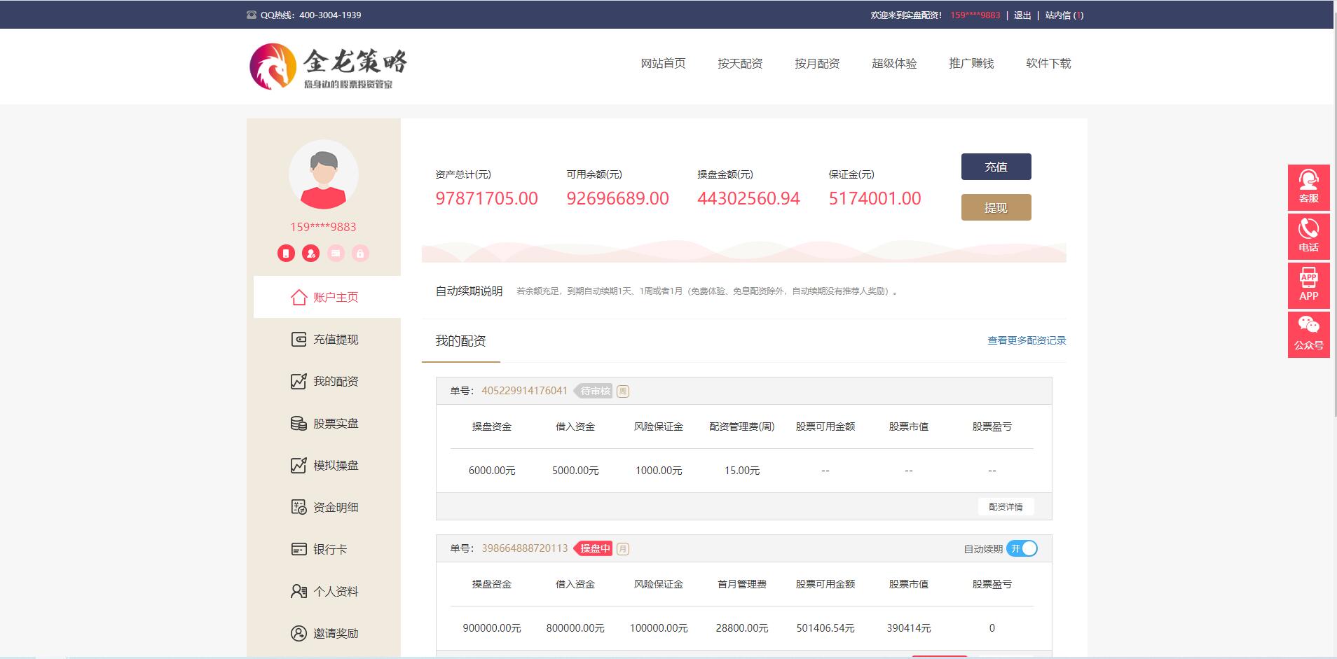 2024修复版配资系统/A股股票系统/买点策略/pc+wap可封装