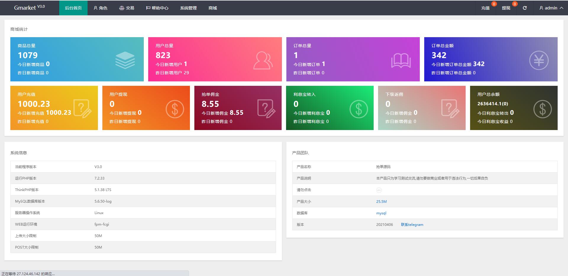 源码无忧网 » 全新多语言四套UI海外抢单刷单系统/订单自动匹配系统/分组杀/连单控
